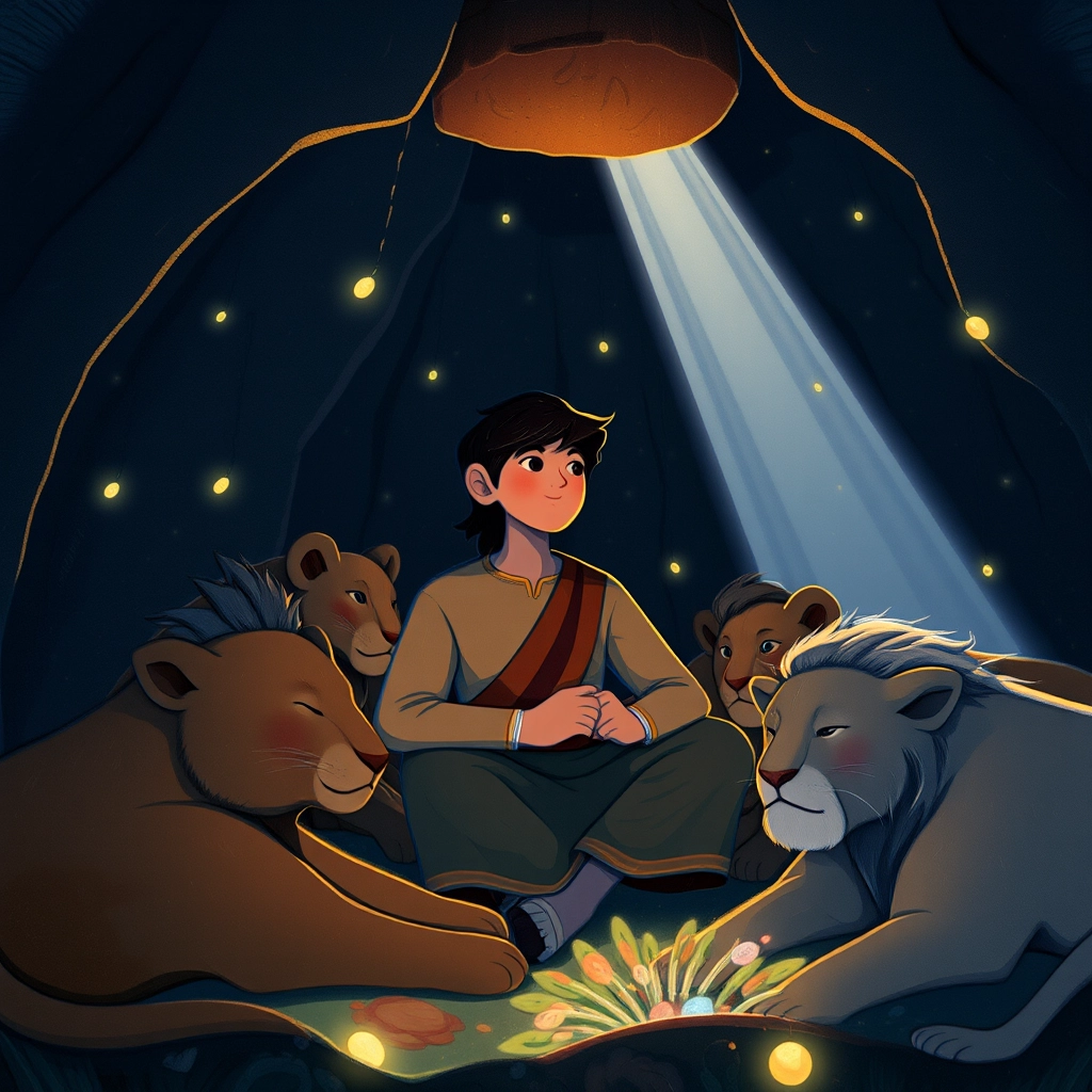 [Daniel](GP6NSTM2) was thrown into a den of lions, but he prayed to God and stayed calm. The lions didn’t harm him, and he was protected for his faith and bravery.