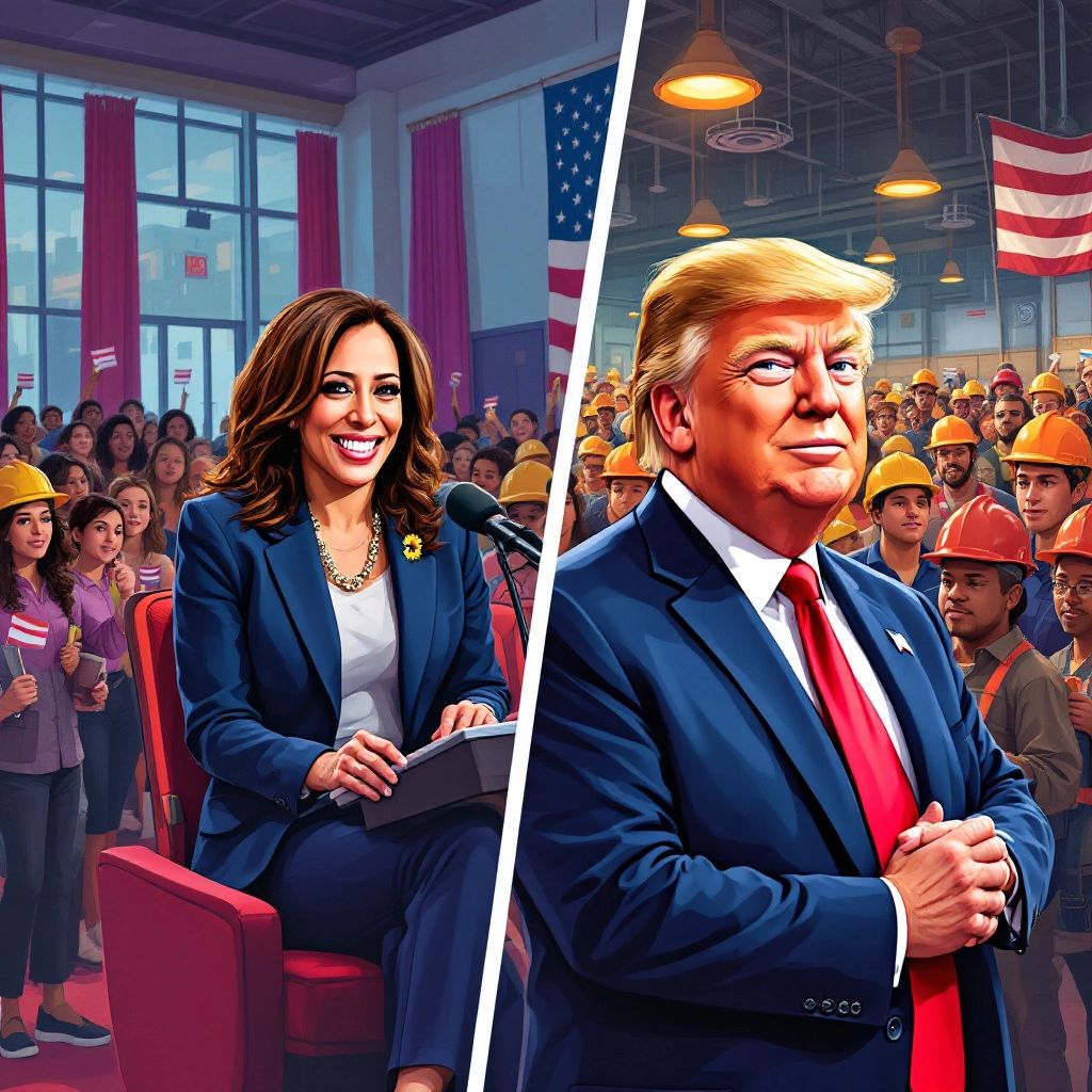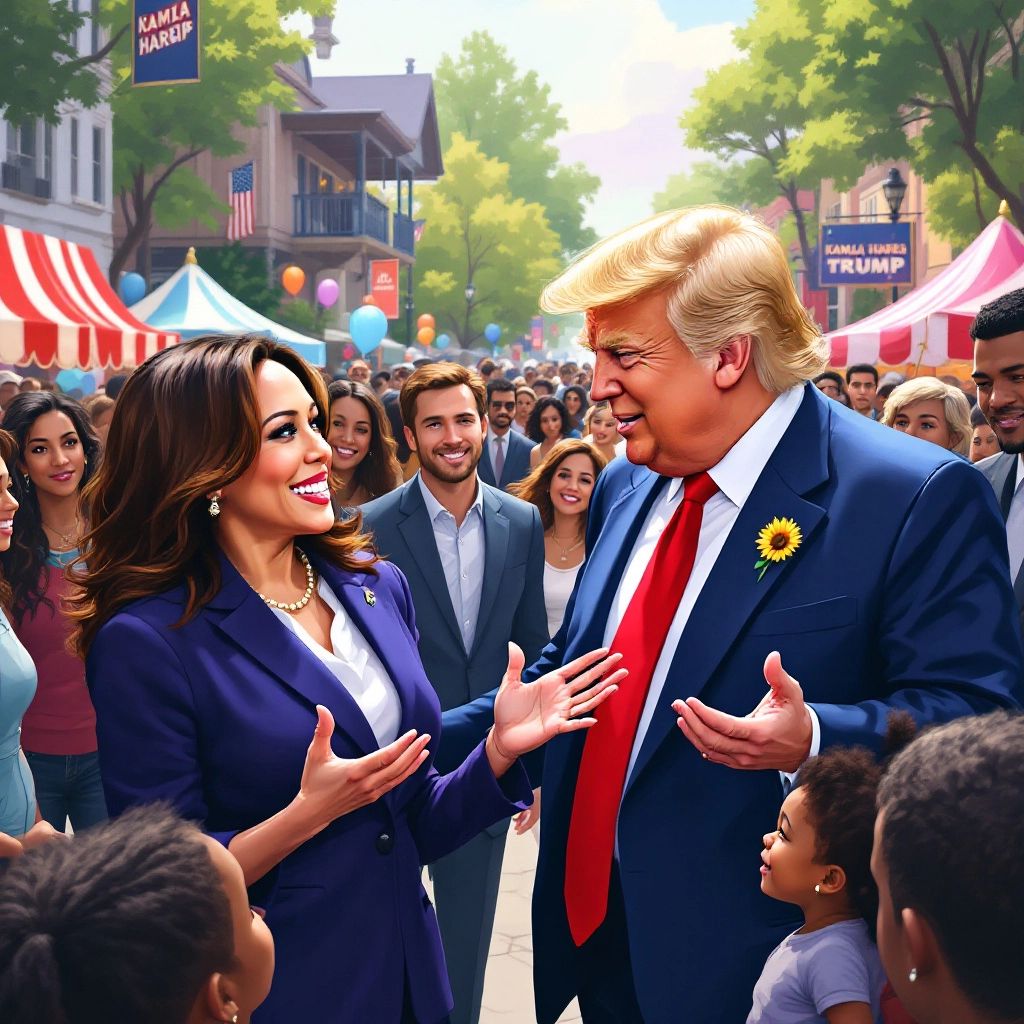 Once upon a time, in the bustling cities and quiet towns across the land, the people were getting ready for another important election. Two special candidates, [Kamala Harris](JTWQFNMJ) and [Trump](DP2PY6XM), were traveling all over, talking to everyone about the big choice ahead.