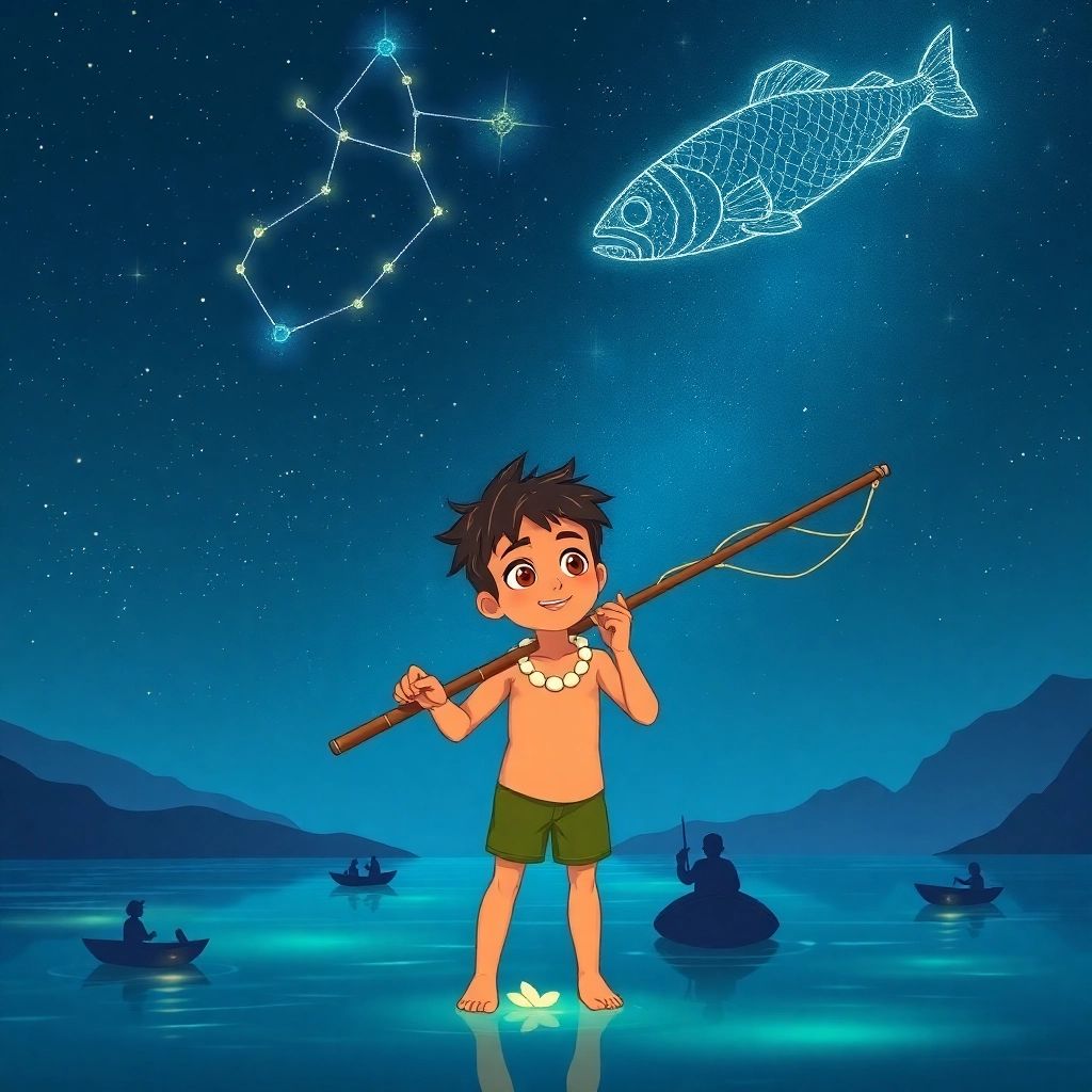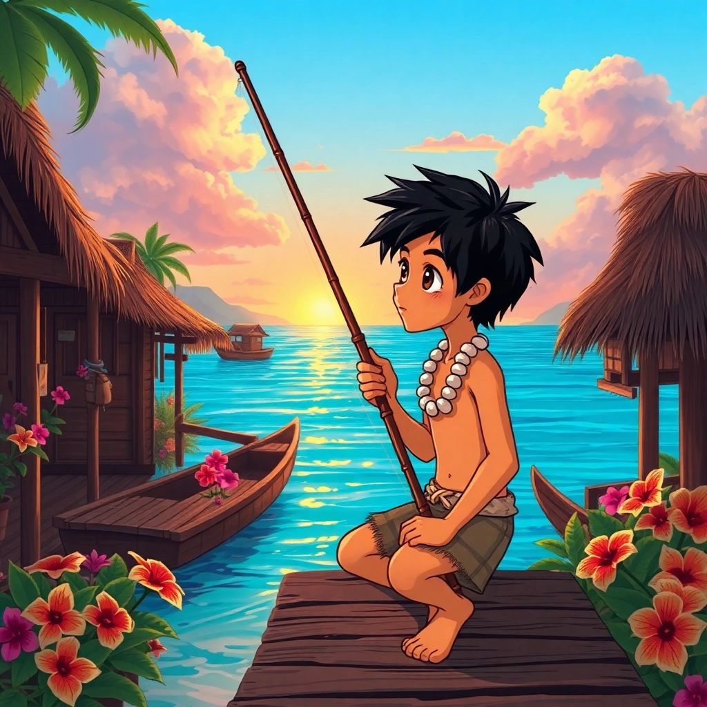 Once upon a time, in a small village on the edge of the Pacific Ocean, there lived a curious boy named [Kahu](HHT2ZJZD). He loved fishing and dreaming of the great mysteries beneath the waves.