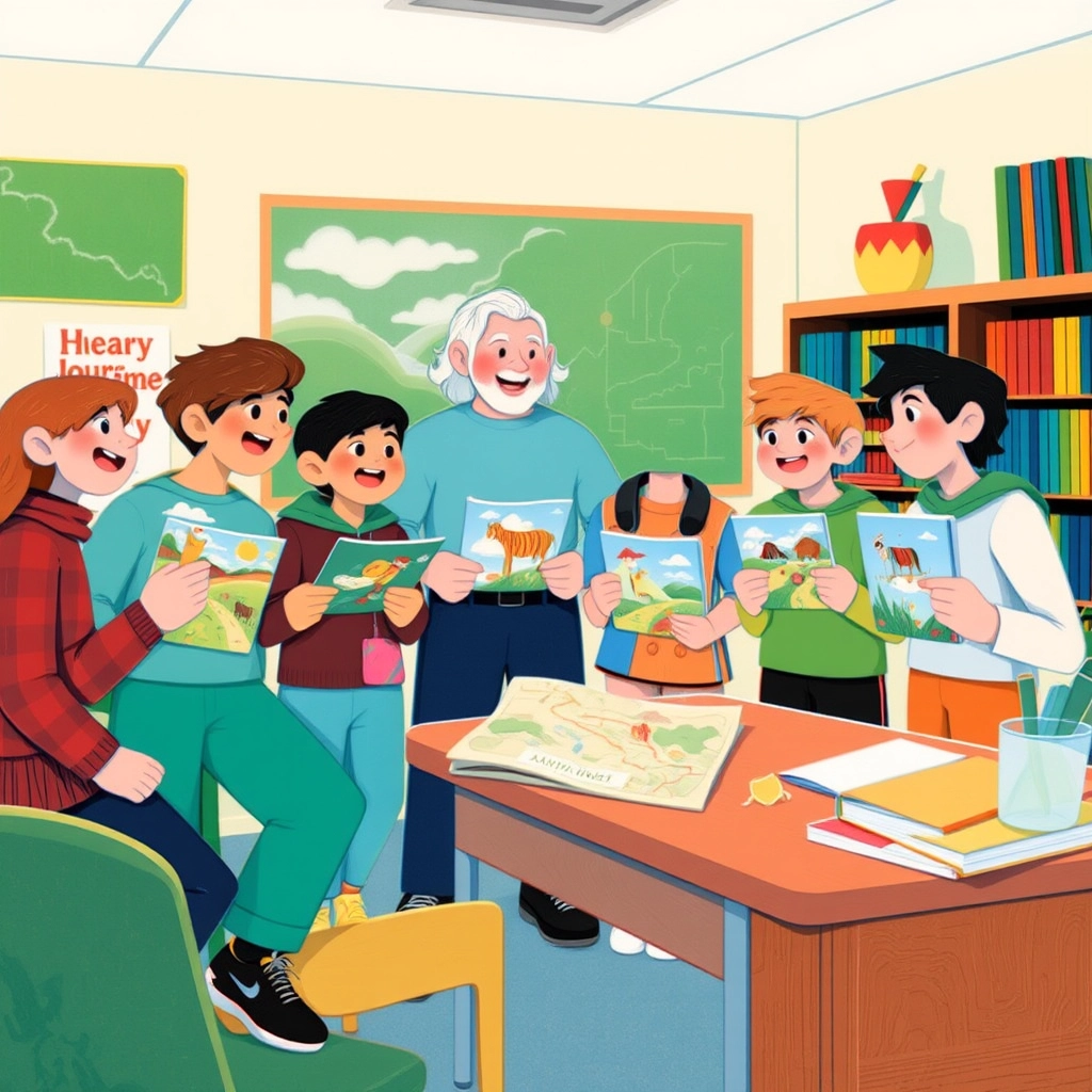 Back at school, the class shared their adventure with their teacher and friends. Although the treasure chest was magical and vanished when they left the forest, they knew they had found something even more valuable: courage, teamwork, and an unforgettable journey.