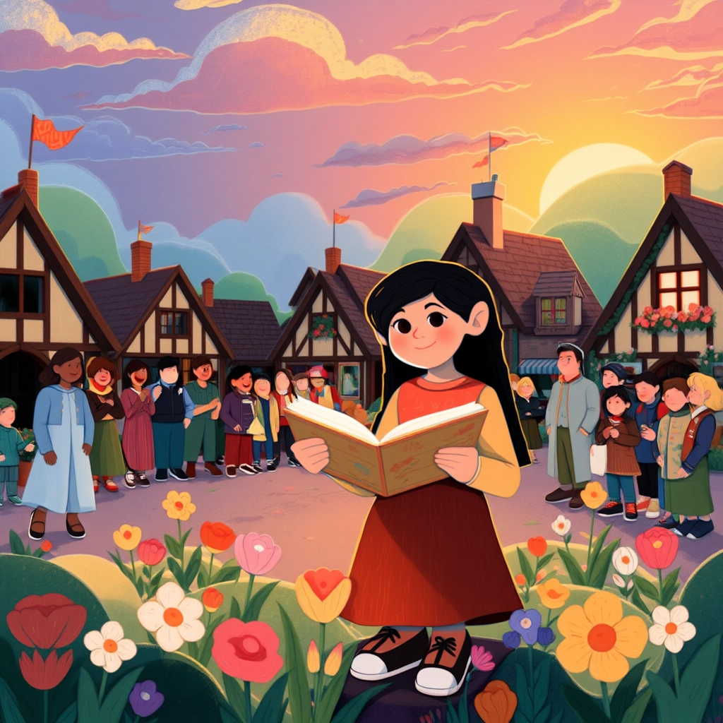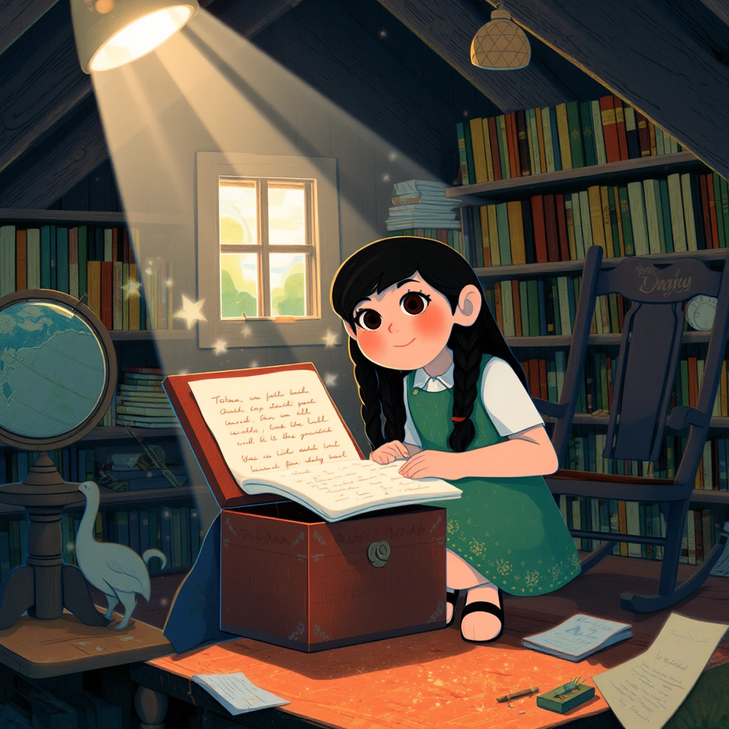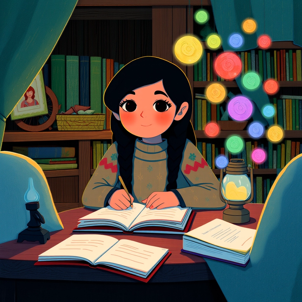 [Mina](XHGPYPHD) carried this lesson in her heart. She balanced her chores with reading her grandmother’s books and writing in her little journal. Soon, her curious mind buzzed with ideas.