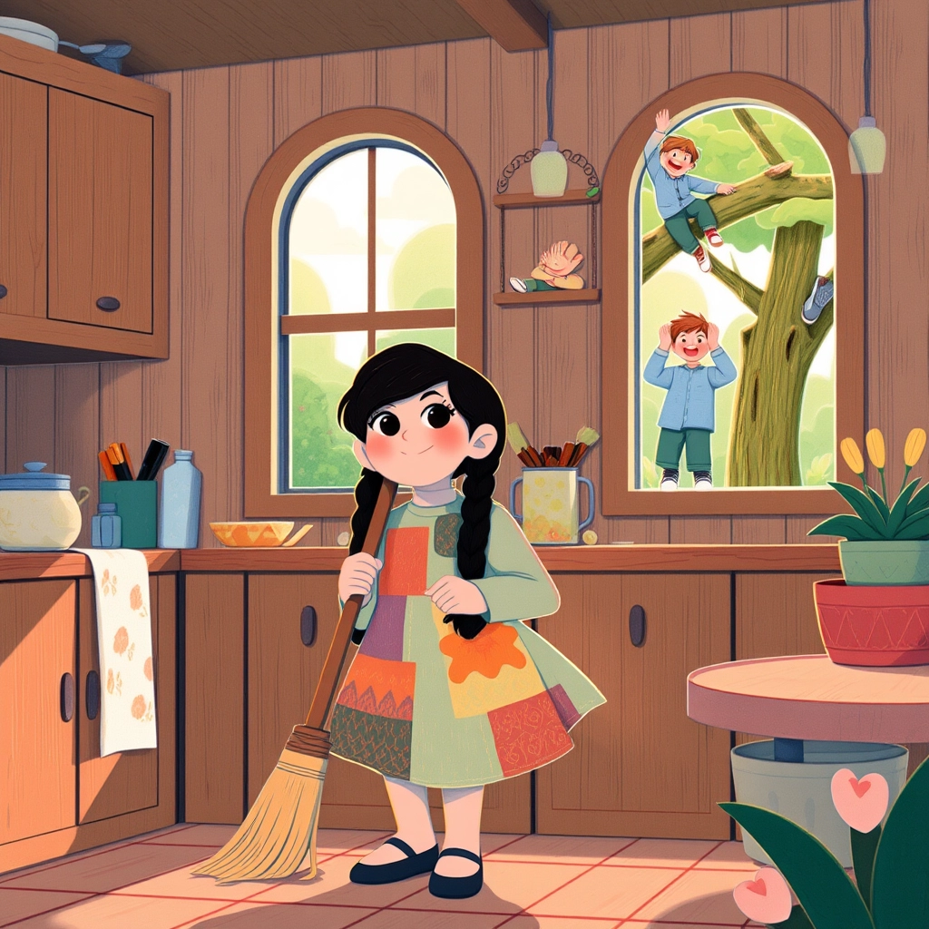 Her brothers noticed her determination and began to help with chores, inspired by her hard work and dedication.