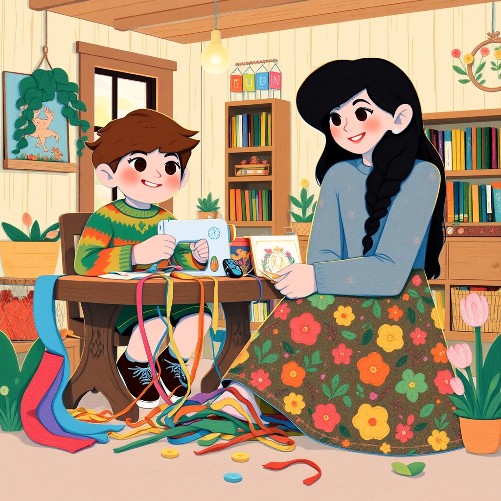 Once upon a time, in a snug little town surrounded by hills, there lived [Jamie](SWCRNPF6), a little boy with big, curious eyes and his mom, [Mia](GWWYDYCH), who always wore her hair in a braid that never seemed to come undone.