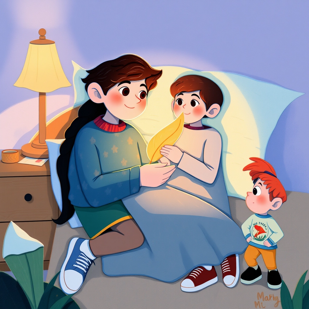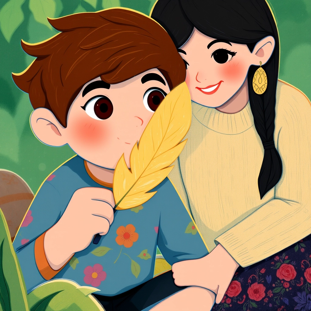 One day, [Jamie](SWCRNPF6) realized something: 'The Feather of Courage isn’t magic at all, Mom. It’s you. You’ve always taught me to be brave.' [Mia](GWWYDYCH) smiled and said, 'And you’ve always been my little warrior.'