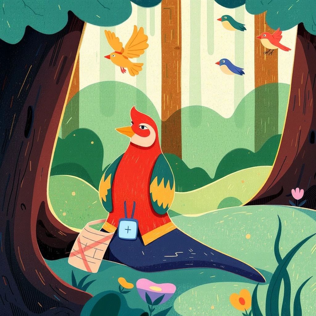 Deep in the lush green forest lived [Dr. Woody](XDHLHLNK), the woodpecker, known for being the best tree doctor.