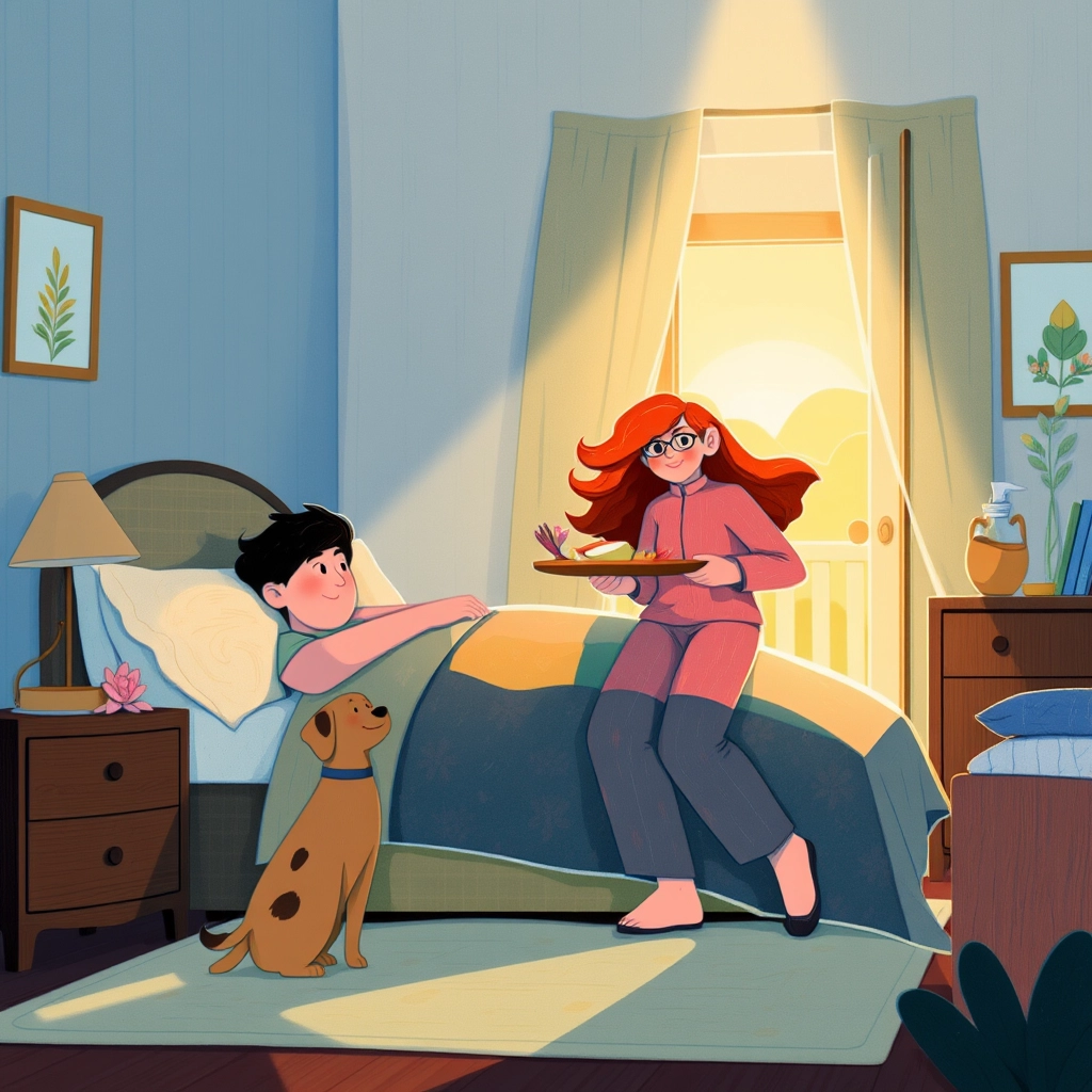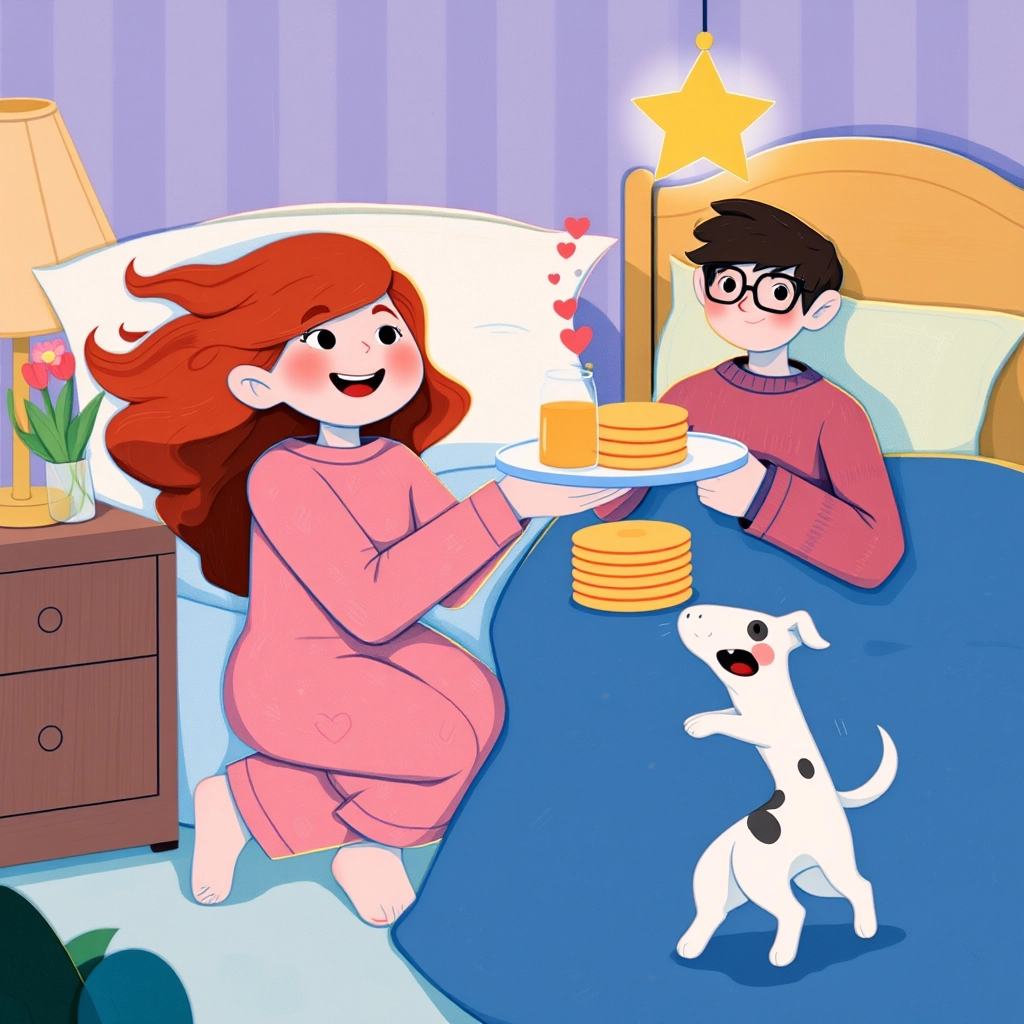 It was a sunny morning at the cozy Wilson house, and [Emma](N9J7TFRP) tiptoed into the kitchen with a big idea. She wanted to surprise [Harry](XSZ6HRGP) with breakfast in bed!