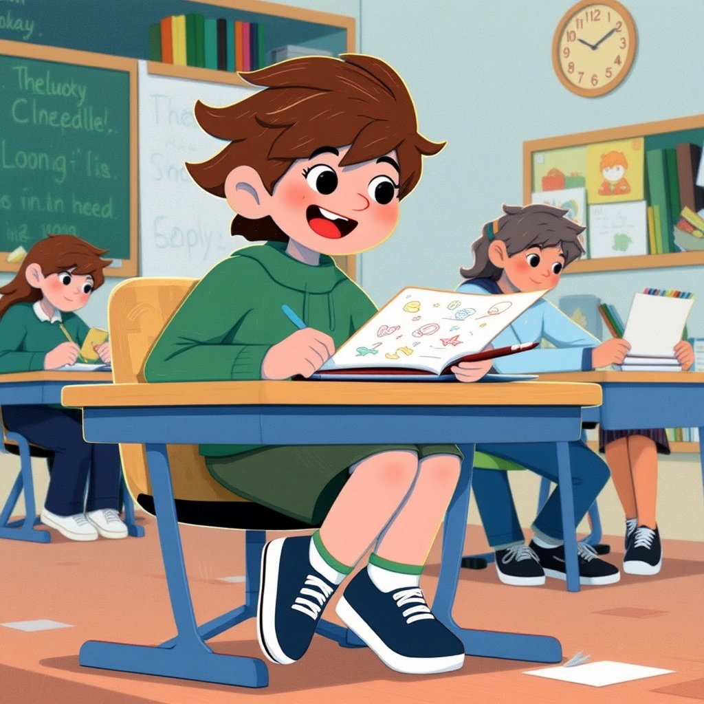 Sometimes his body moved as fast as his thoughts. His knees bounced. His fingers tapped. He leaned forward in his chair, eager and ready. Sitting still felt like trying to hold in a laugh — possible, but very hard.