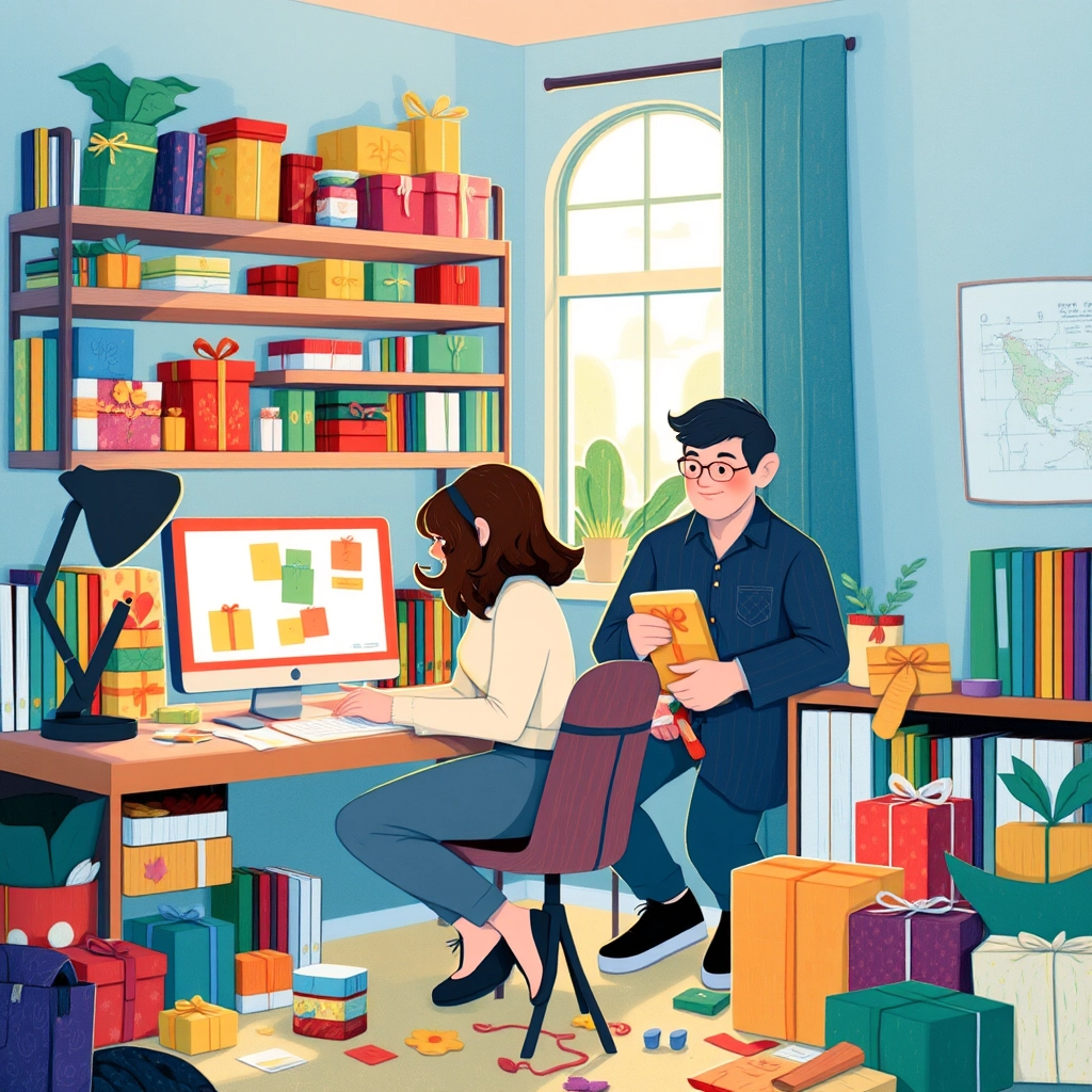 Their parents were entrepreneurs, running a creative gift shop online. Every day, they worked hard to design new items and deliver happiness to people far and wide.