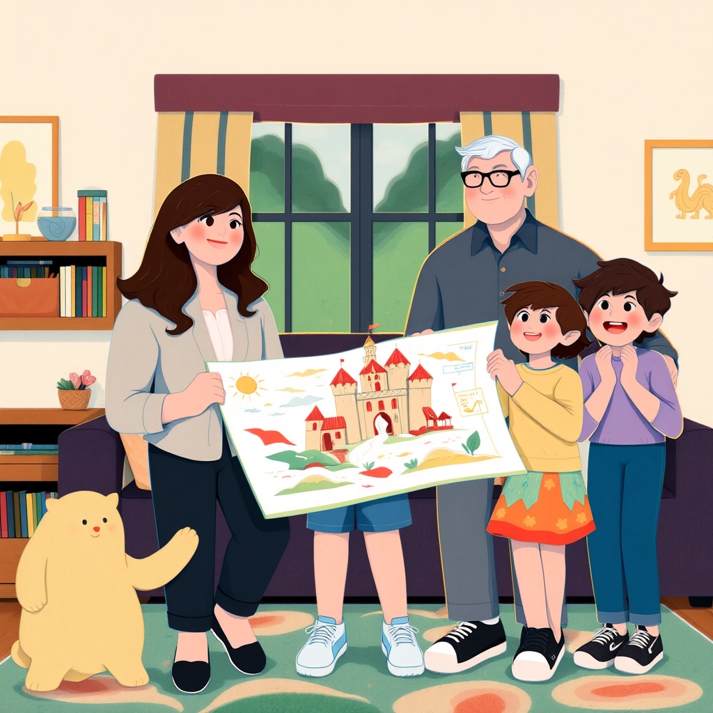 One weekend, their parents said, 'You kids have been so good this week, we think it's time for a family project!' This sparked excitement all around.