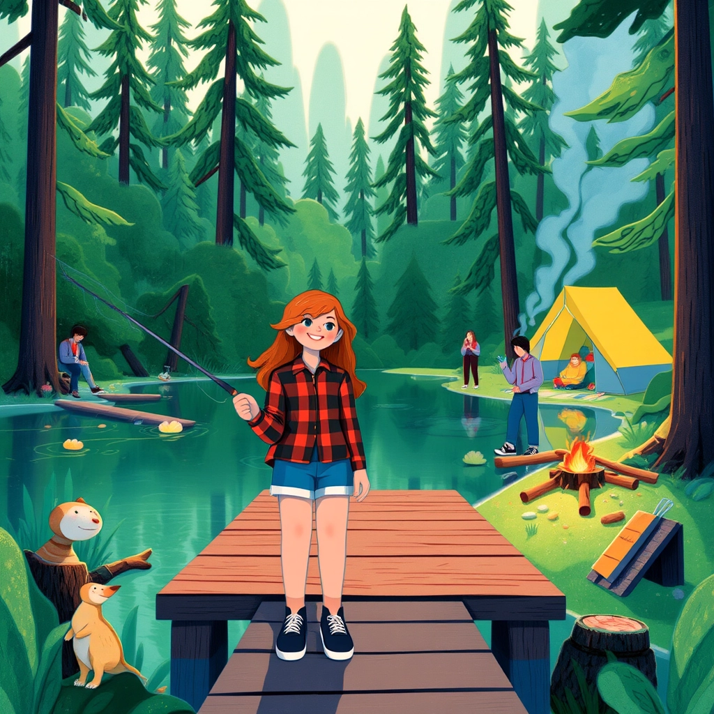 Once upon a time, there was a cheerful girl named [Lily](JS34PXXV) who loved camping and fishing with her family. They lived by a beautiful forest with a shimmering lake where they spent weekends telling stories, roasting marshmallows, and catching fish.