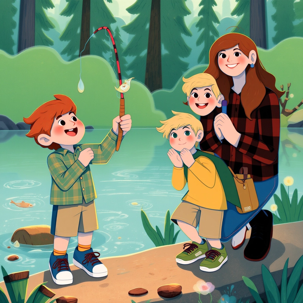 The next morning, they went fishing, just like [Lily](JS34PXXV) had done years ago. [Max](R2PPKHW5) was excited to catch his very first fish and learned quickly thanks to his mom's guidance.