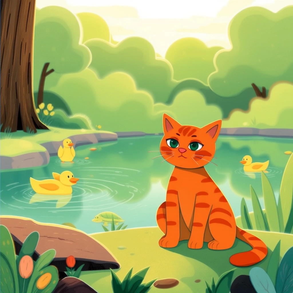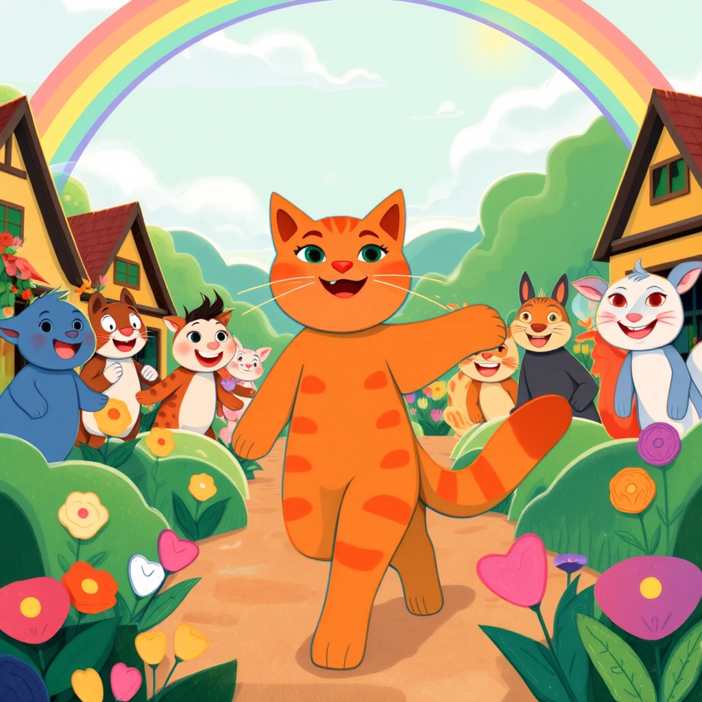 Once upon a time in a cozy village, there lived a proud orange cat named [Ginger](YL2MJT7C). [Ginger](YL2MJT7C) had six shiny golden whiskers, three on each side of his face. He loved showing them off to all the villagers and other animals.