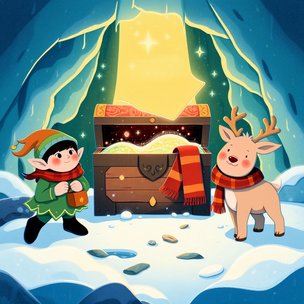 Inside the treasure chest, they found magical snowflakes that danced and sparkled in the air, and a note saying: "Your Christmas wish will come true!"