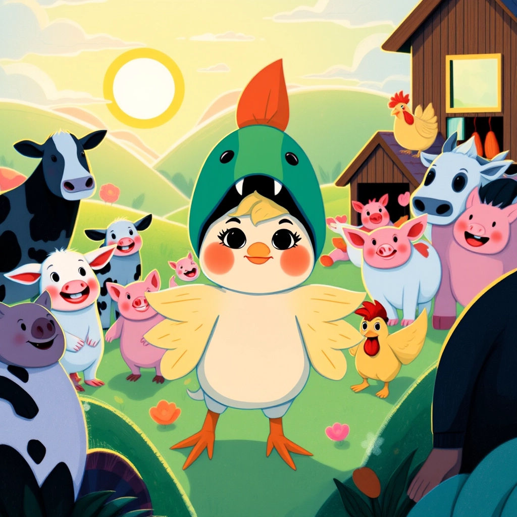 Once upon a time, in a cheerful farm nestled in a green valley, there lived a chicken named [Clara](RCDTJGSM). [Clara](RCDTJGSM) was small, with shiny golden feathers and a beak that always seemed to be in a smile.