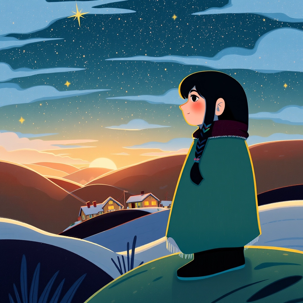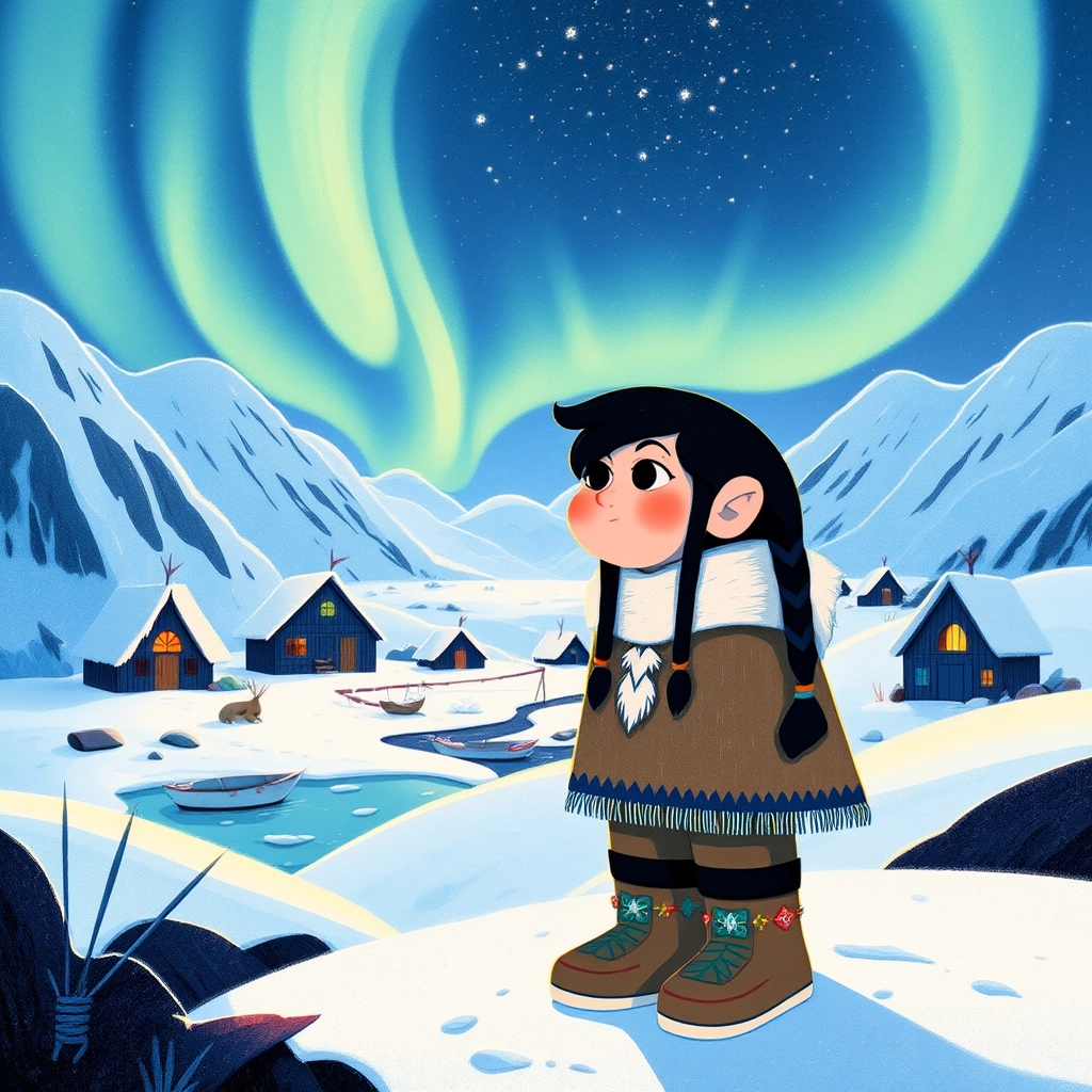 High above the Arctic Circle, in a small and snow-blanketed village of Nunavik, lived a young dreamer named [Siku](QKNKBT6Q). The icy tundra stretched endlessly under the shimmering greens and purples of the northern lights.