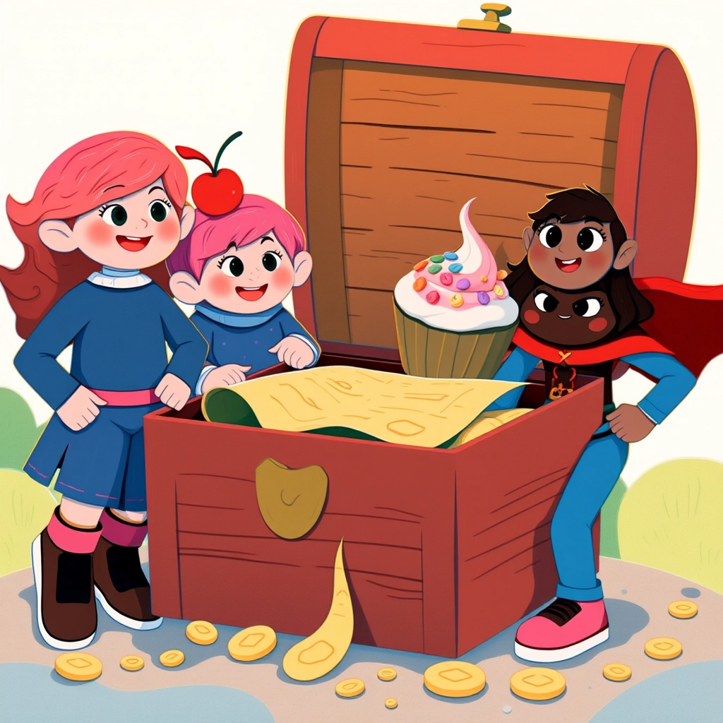 Inside the treasure chest was a map to even more adventures. [Cherry](K5PLF2PT) said, 'Let’s explore this tomorrow!' [Coco](G5X2RJDZ) nodded, and [Sprinkle](2PNRPBQN) squealed.