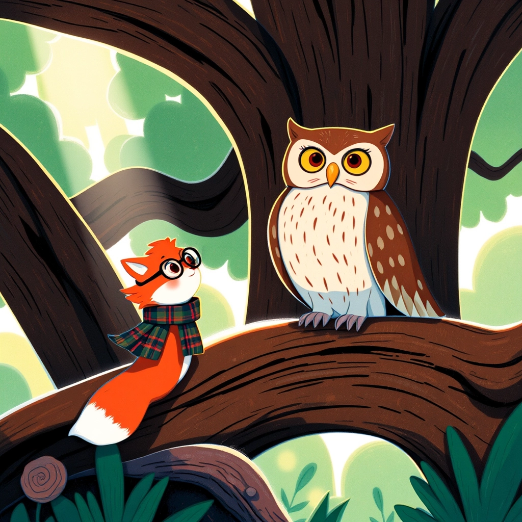 Under the looming shadow of a giant oak, they encountered [Luna](JVJN6GWV), an elegant owl who offered riddles to test their cleverness. "Answer my riddle, and I'll show you the shortest path," she hooted.