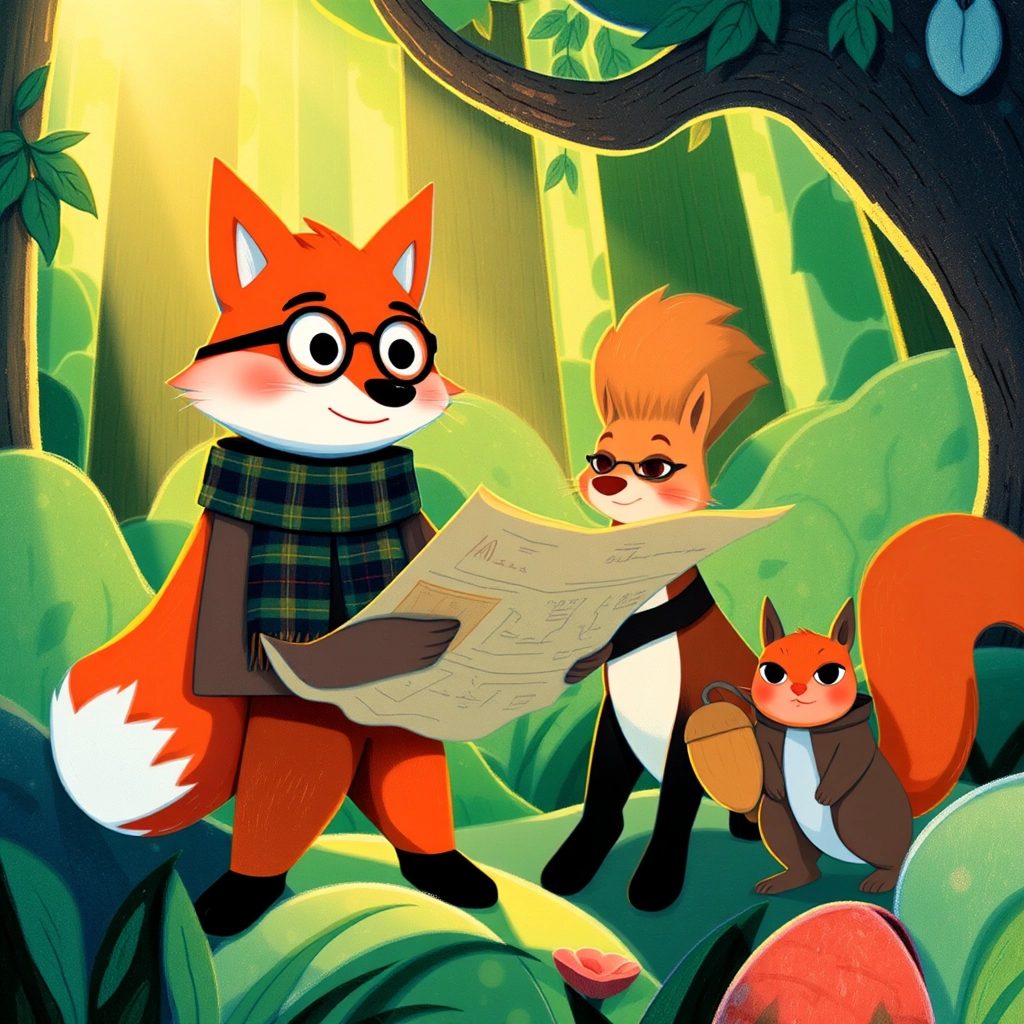 Deep in the heart of the Greenleaf Forest, the curious fox, [Felix](F57B7NDY), discovered a dusty old map under a mossy rock. "This could lead to an adventure!" he exclaimed to his best friend, [Sophie](3TRHXGQ4) the squirrel.