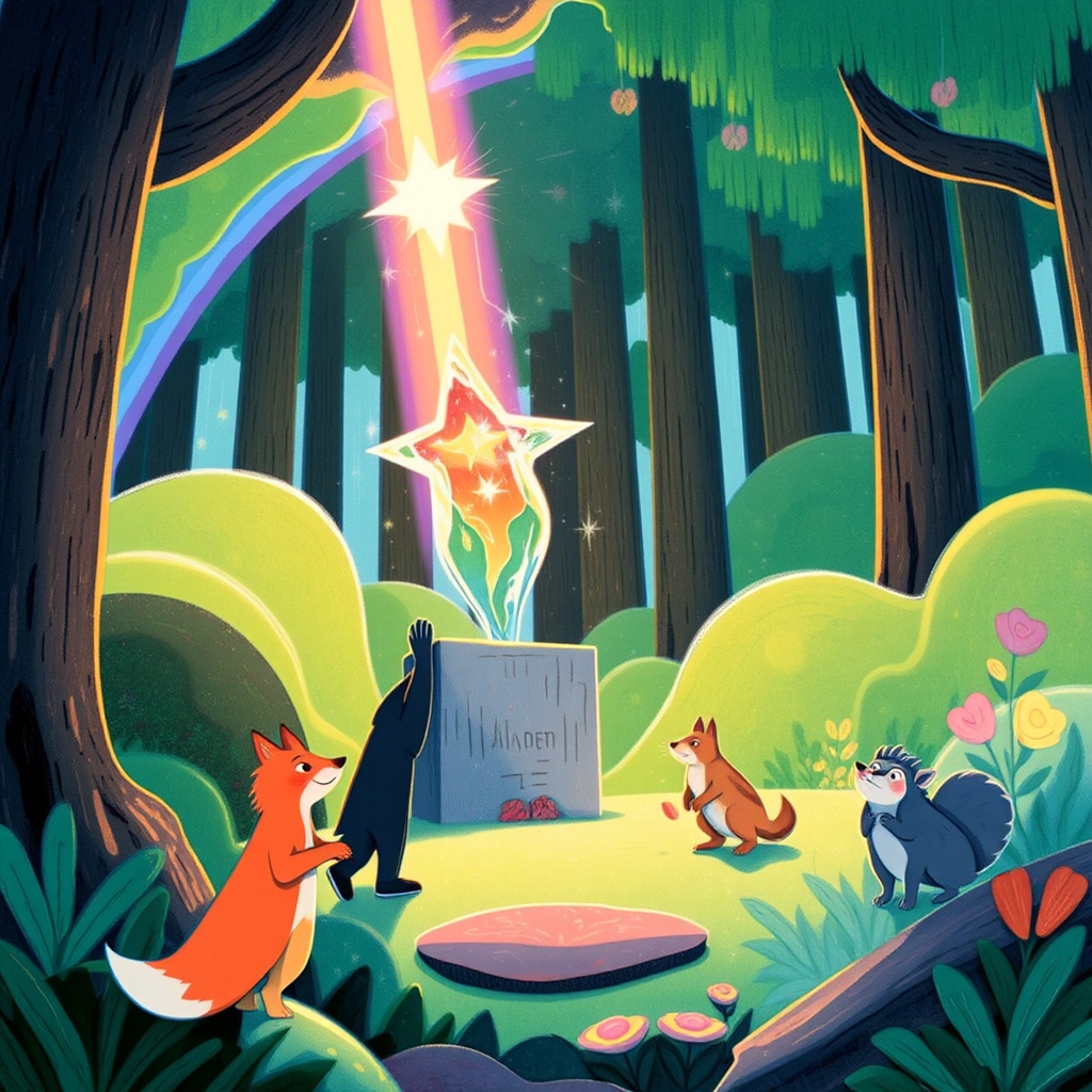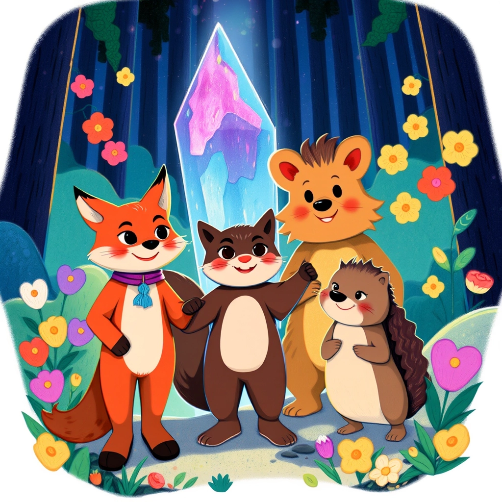 The crystal revealed it was a magical source of the forest's beauty, and touching it together made the trio feel a warm sense of harmony and courage.