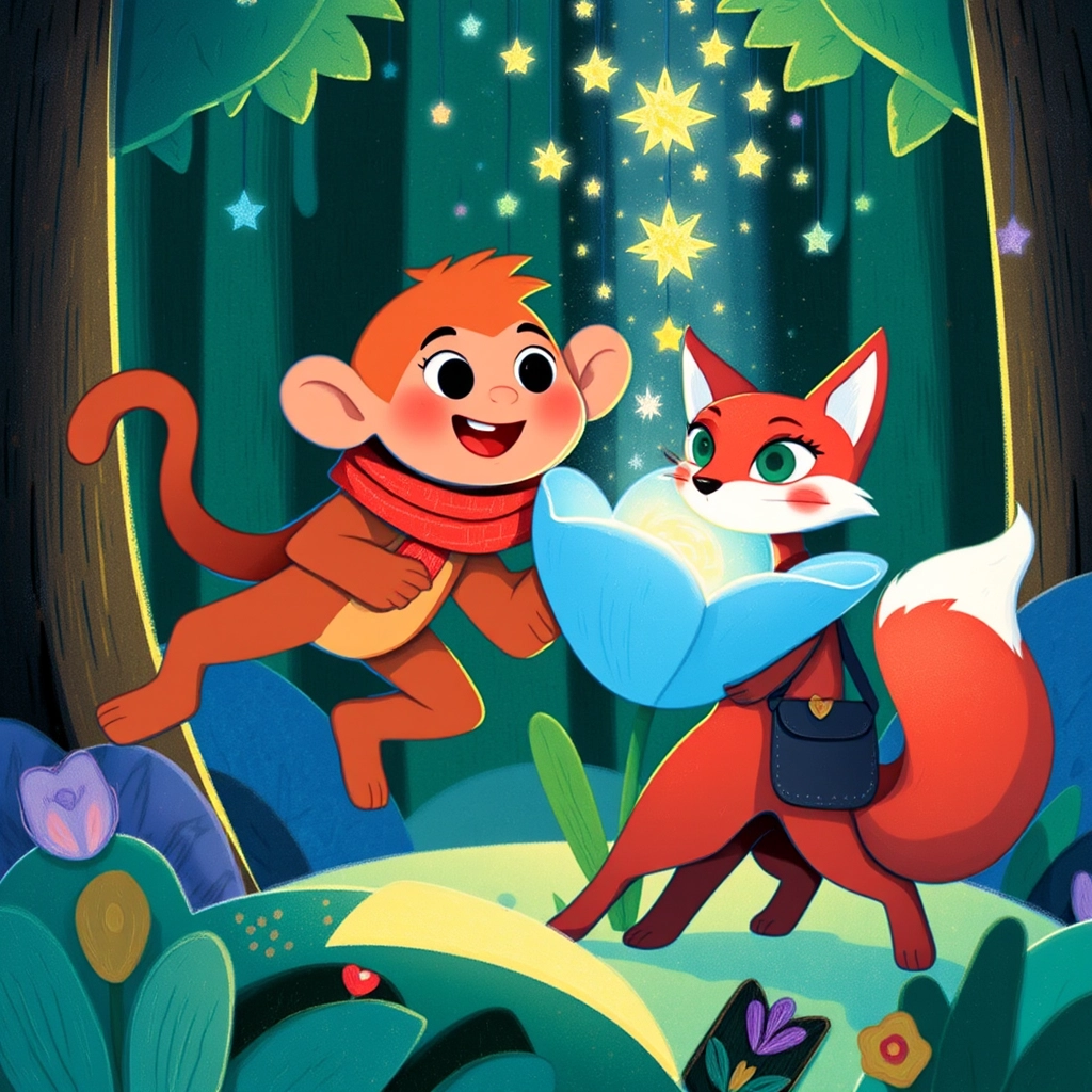[Max](3TM5PVH2) met with [Lila](PTQMC3M9) the fox, who had gorgeous red fur and sparkling green eyes. 'Let's find the magical blue flower!' she suggested.