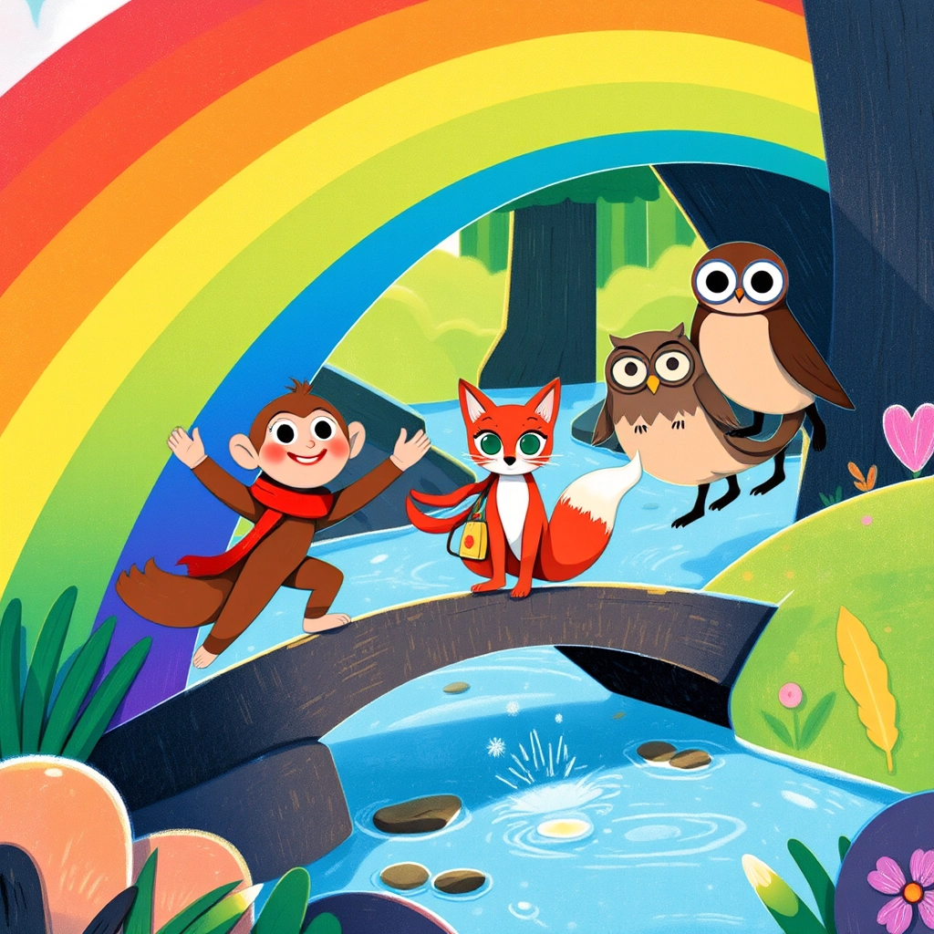 [Max](3TM5PVH2) and [Lila](PTQMC3M9) solved [Ollie](425YBZQX)'s first riddle and crossed a sparkling rainbow bridge over a babbling brook.