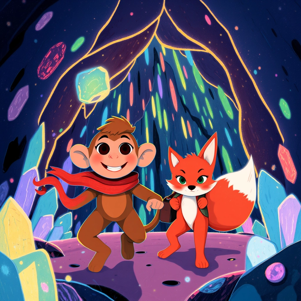 After arranging the stones, [Max](3TM5PVH2) and [Lila](PTQMC3M9) found a hidden tunnel leading to a glowing cave filled with sparkling crystals.