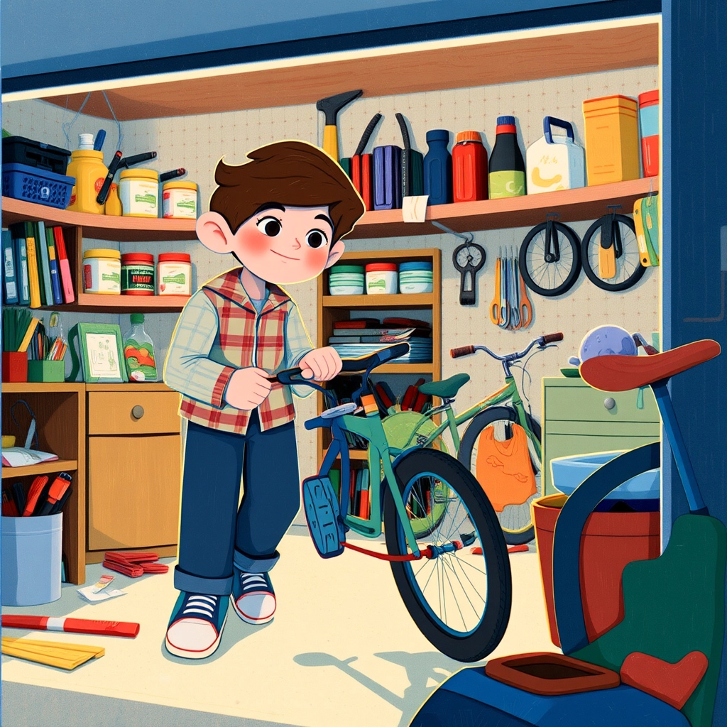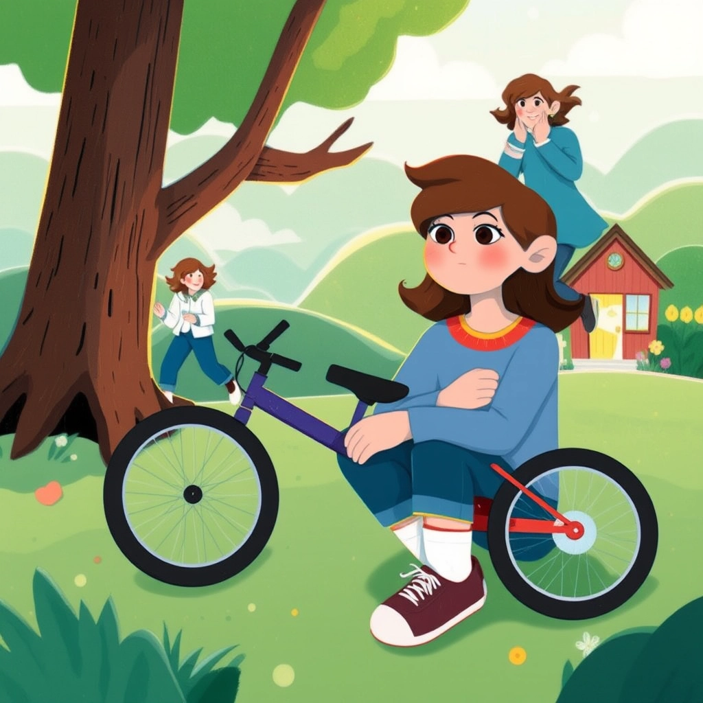 Her bike was once pretty, with streamers and glitter. But she fixed it with paint and robot stickers. However, there was a problem you see: her trusty bike had more wheels than three!