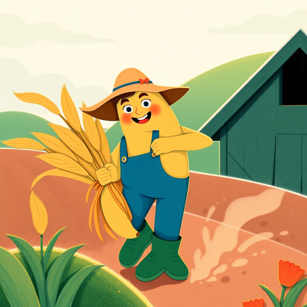 On a sunny farm, not far from town, lived [Farmer Banana](DSHR6CSQ), never wearing a frown.
