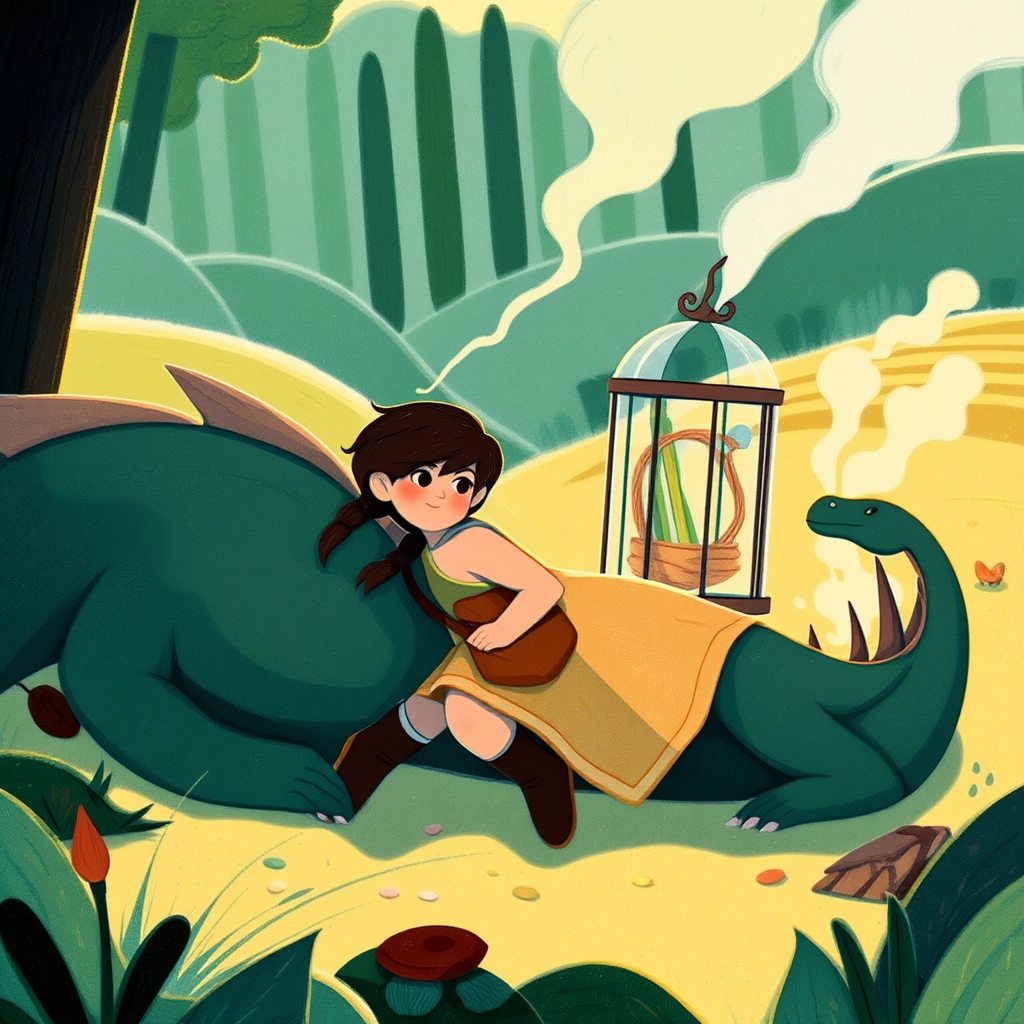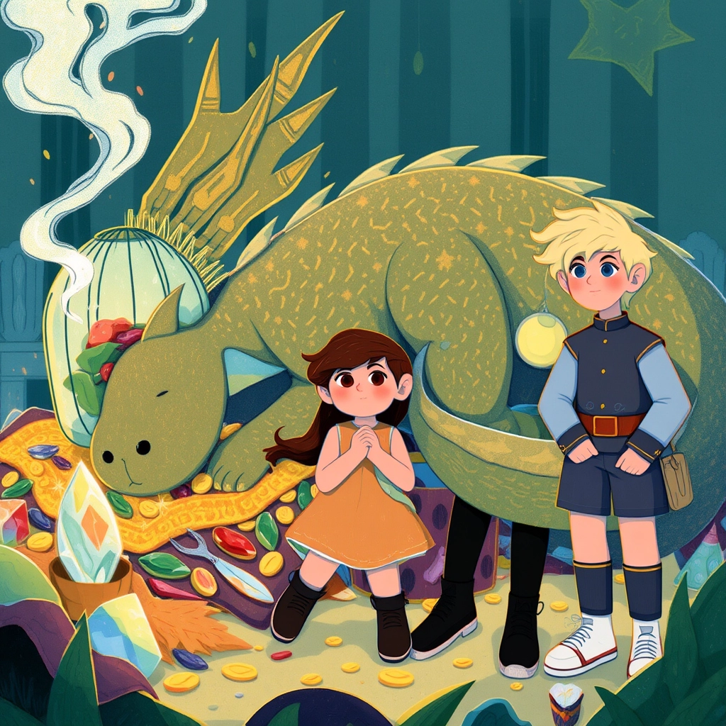 At the peak, [Mira](3V9WKJNP) found the dragon snoring beside a glimmering mound of stolen treasures. Among them, Prince [Theo](YF4GCSK2) was locked in a glittering crystal cage. [Mira](3V9WKJNP) knew she would have to be clever to rescue him.