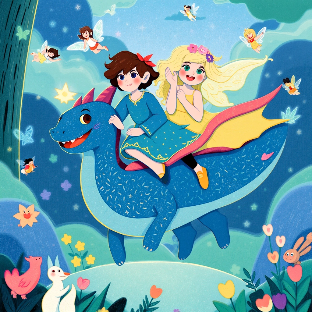 As the sisters journeyed through the forest, they danced with fairies, talked to animals, and even rode a friendly dragon while hiding eggs.