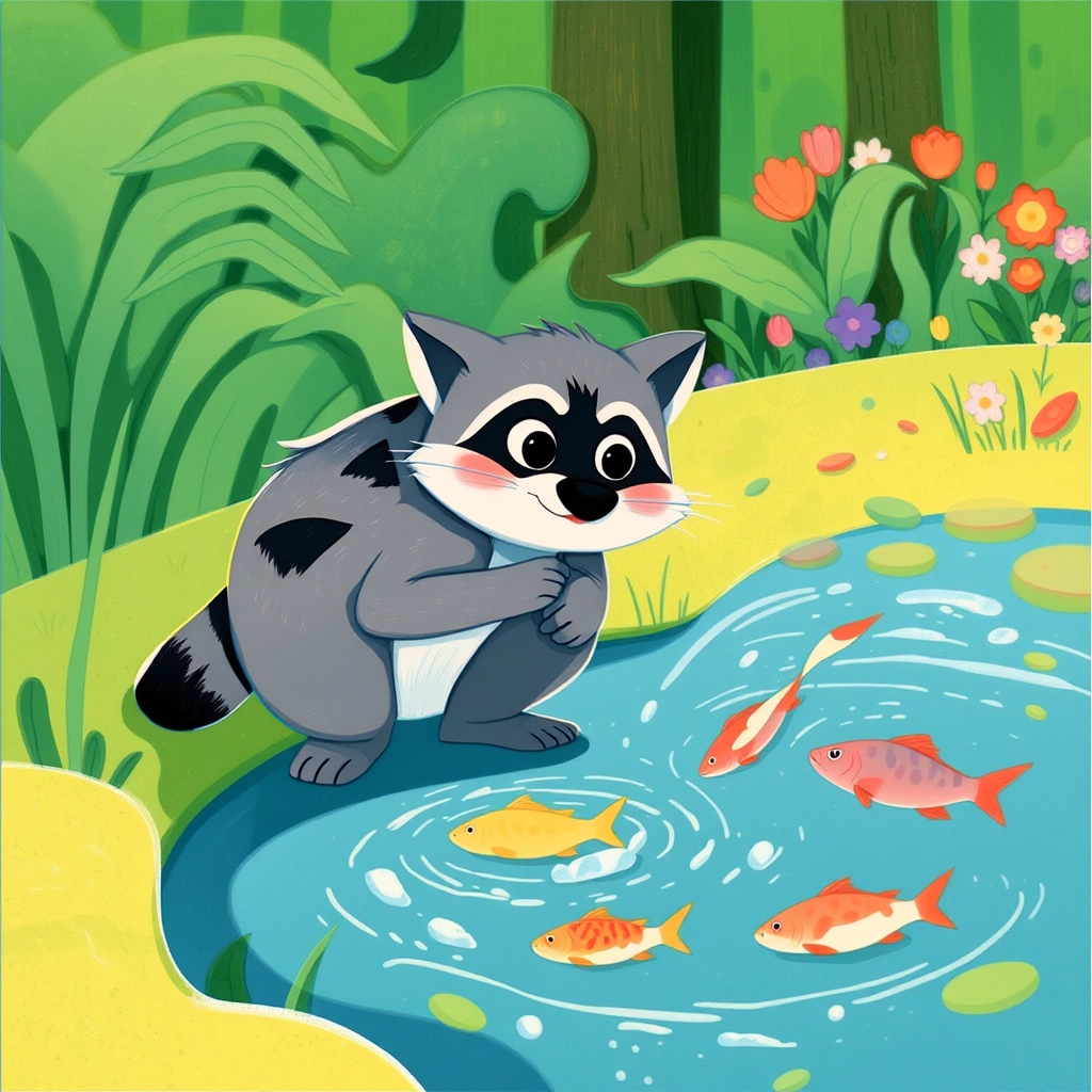[Cheddar the Raccoon](MPZXMBJT) scurried ahead, his striped tail flicking as he spotted something shiny by a bubbling stream. 'Look! Maybe the gem is here!' he exclaimed, his eyes glimmering with excitement.
