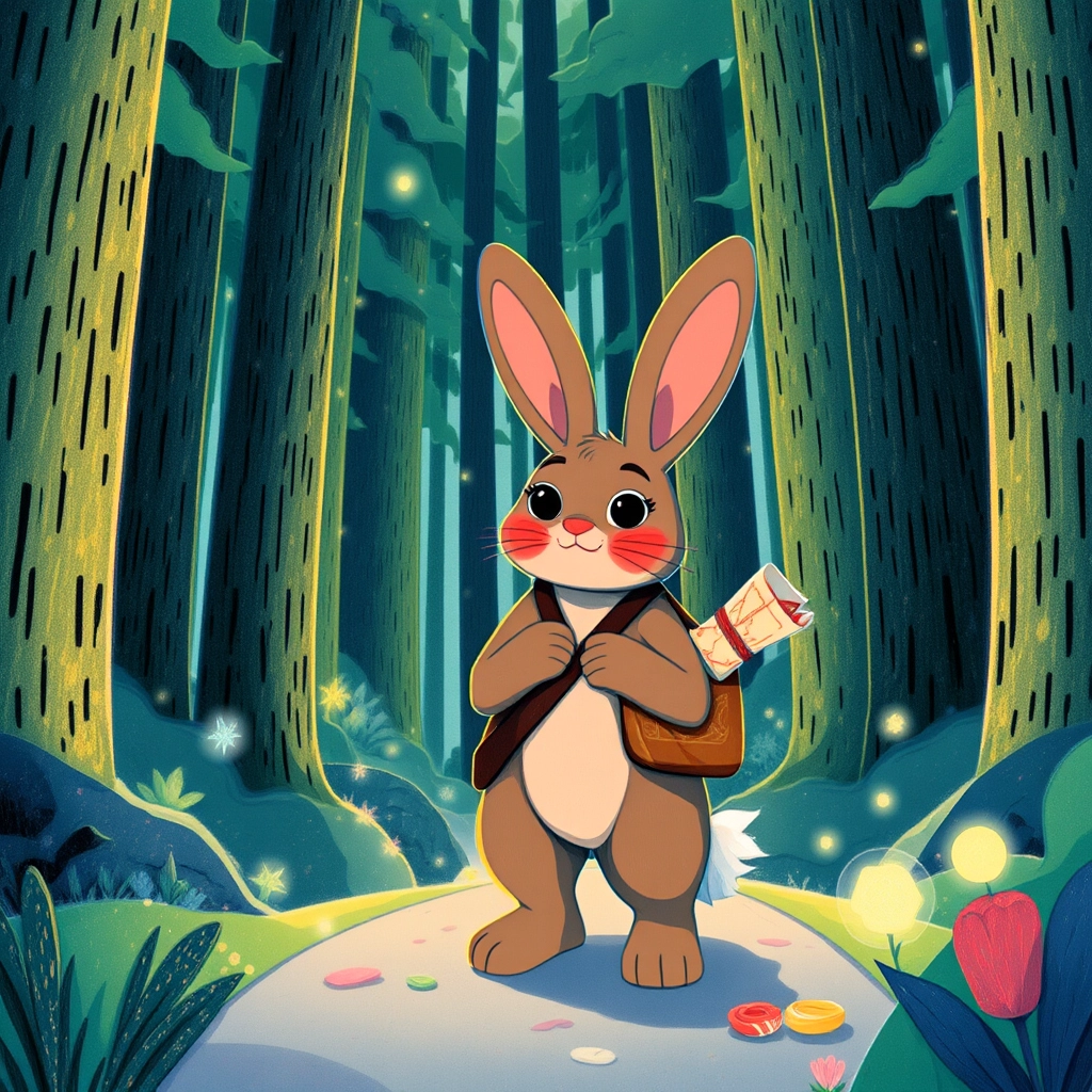 Once upon a time, in the heart of a magical forest, there was a curious bunny named Benny. Benny loved exploring and always carried a tiny satchel filled with maps and colorful candies.