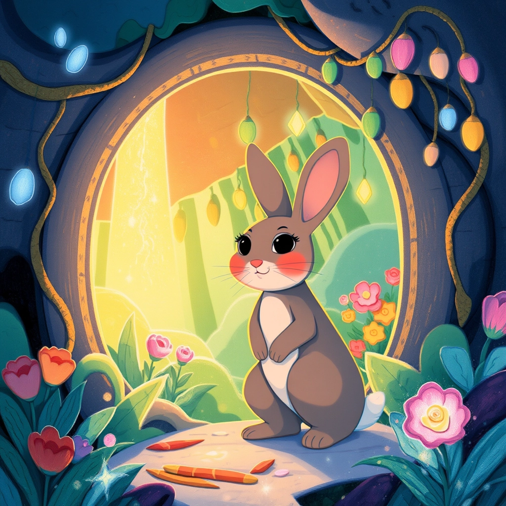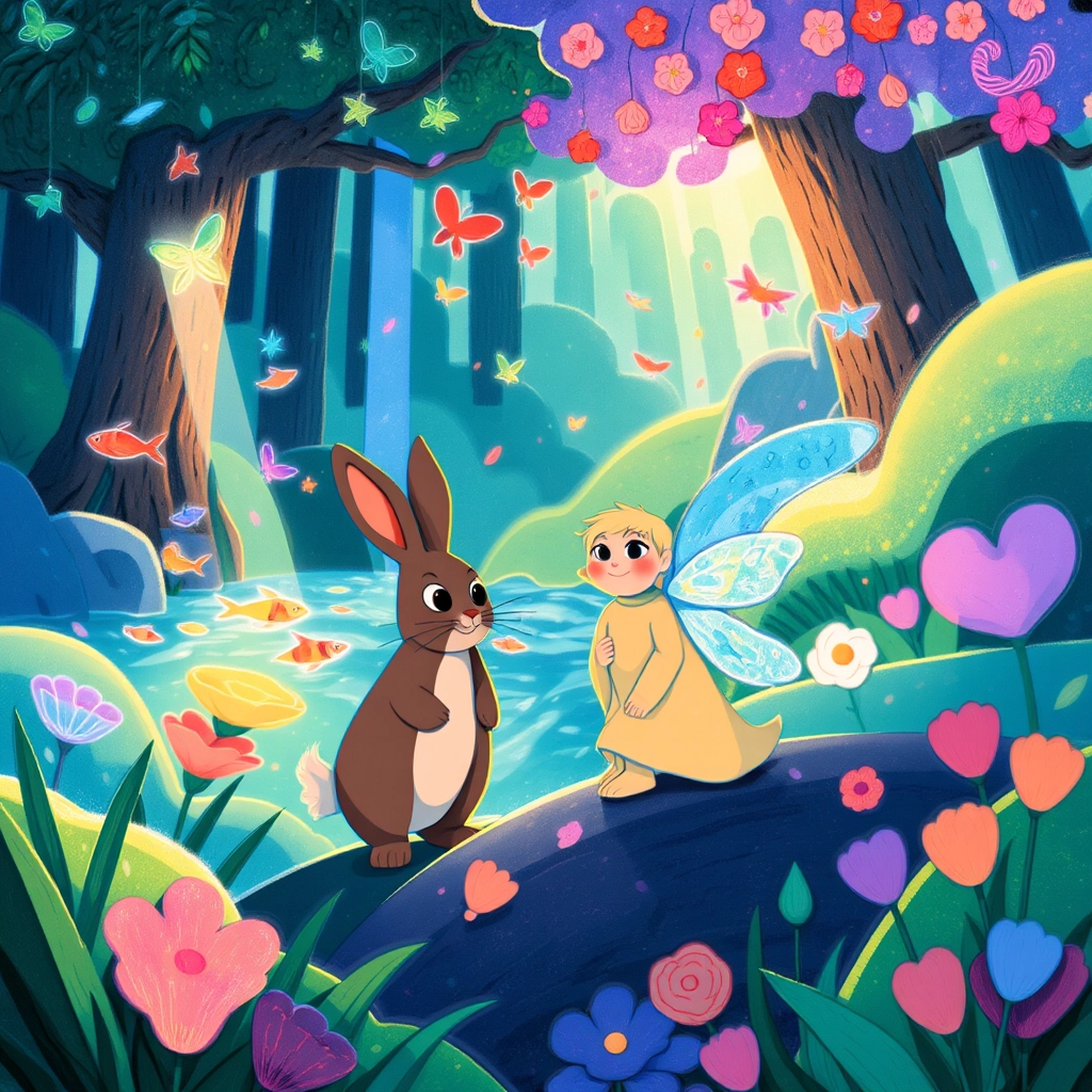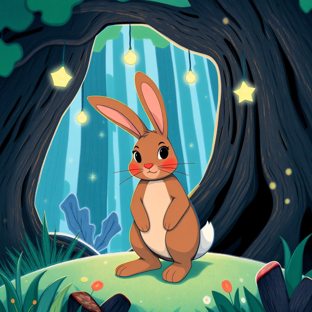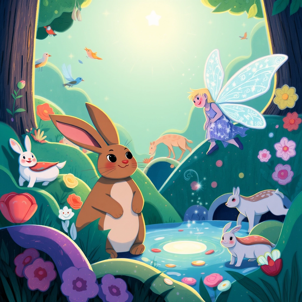 Deep in the heart of the Enchanted Forest, where the trees seemed to whisper secrets and the air sparkled with magic, lived a clever rabbit named [Benny](3Q3G55YB). [Benny](3Q3G55YB) loved exploring the forest's hidden paths and discovering magical places no one else had seen.