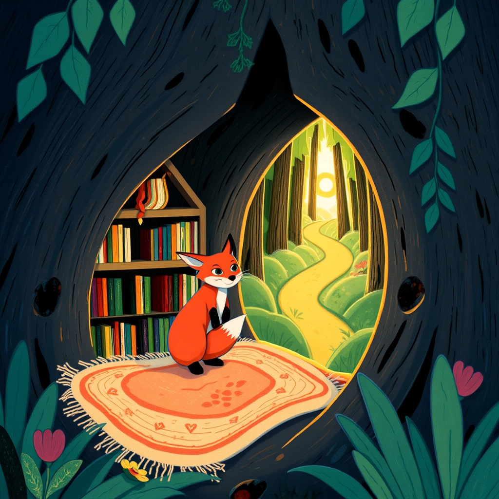 In a cozy tree hollow, [Pip](9NNVKY2C), the adventurous fox, stood looking outside. He had heard about the magical EverGem, which was said to grant kindness and courage to those who found it. [Pip](9NNVKY2C) decided it was time to explore the forest and seek out its treasure.
