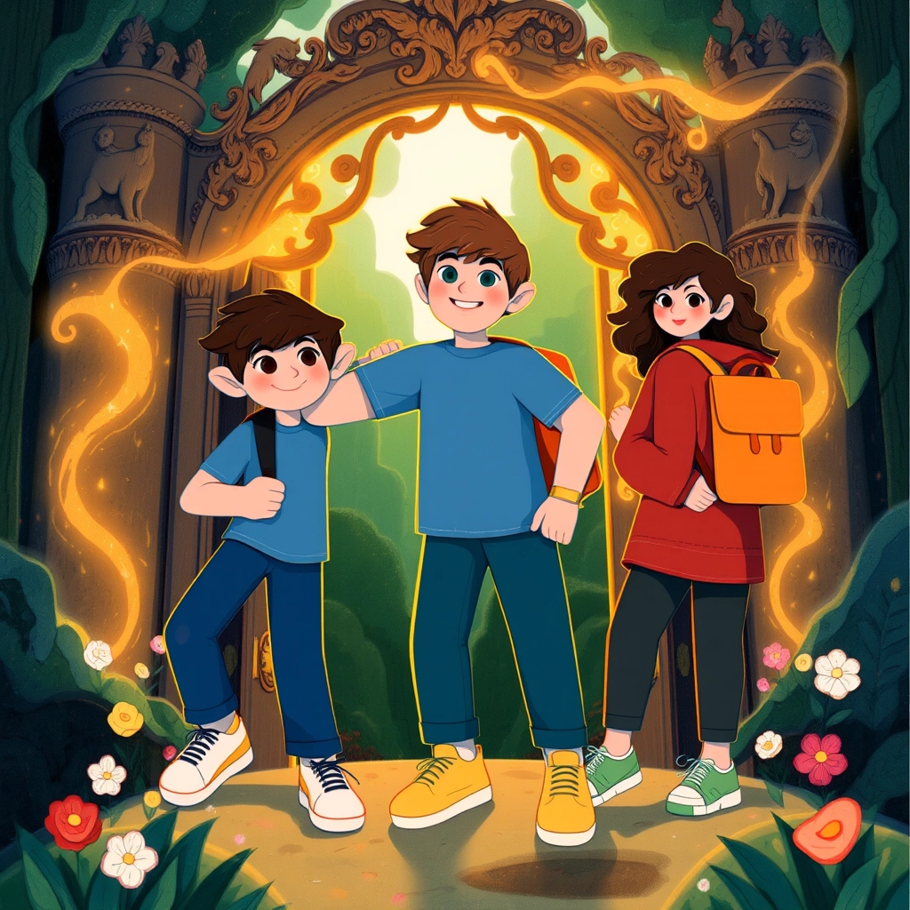 Following the map, [Ben](TW5Z2WK4) and [Emory](BQTW9327) found themselves standing before a majestic gate covered in blooming vines and sparkling gems. The words 'Enchanted Zoo' shimmered above them. As [Ben](TW5Z2WK4) pushed it open with a creak, a warm, magical breeze rushed out, carrying the scent of wildflowers and adventure.