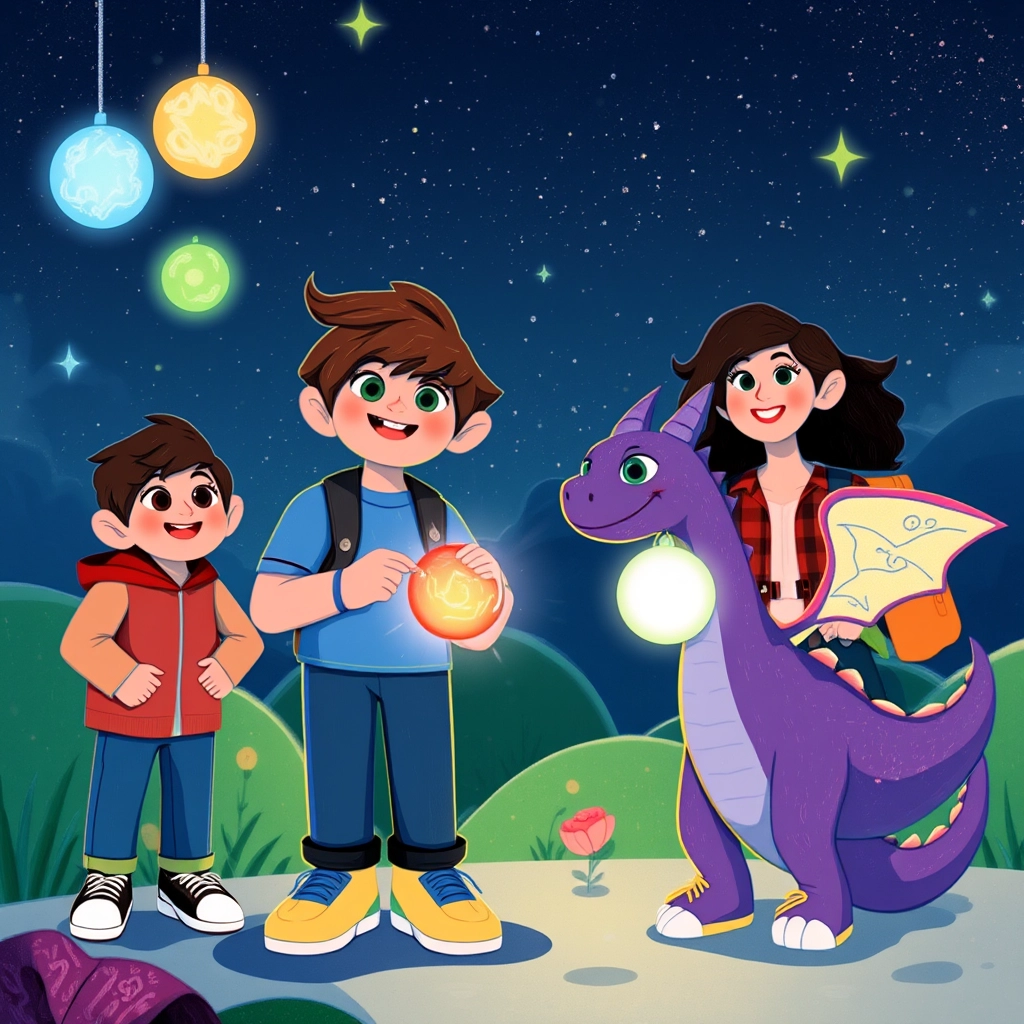In the heart of the zoo, they found a purple dragon named [Pyxie](LJ5HPY6V) juggling glowing orbs. "Kindness strengthens magic!" [Pyxie](LJ5HPY6V) said. To thank [Ben](TW5Z2WK4) and [Emory](BQTW9327), she gave them a glowing orb that pulsed warmly in their hands. "This will remind you of your kindness today," she explained.