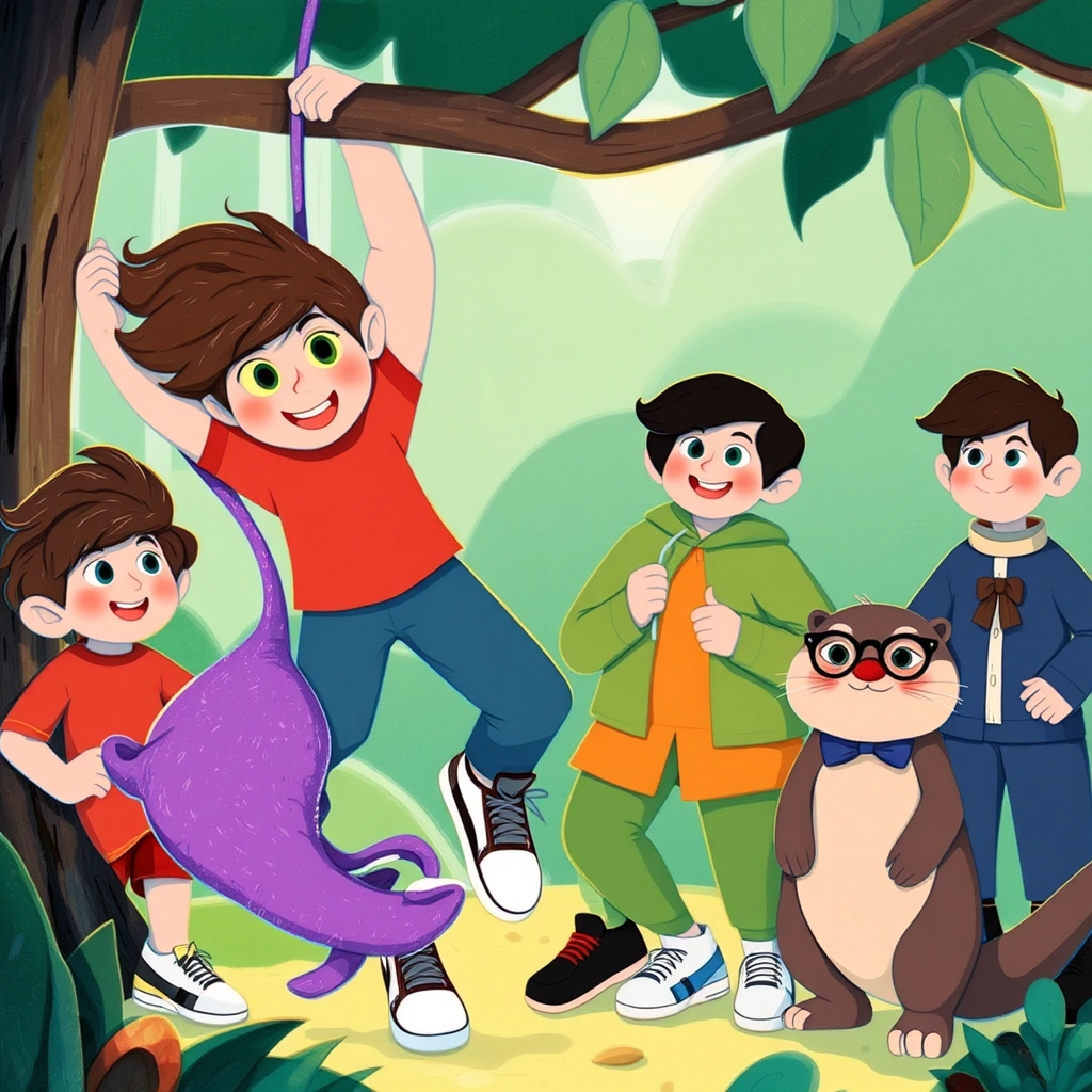 In the forest section, the kids found [Gigglebun](ZQ5QD7B5), a purple furball creature hanging upside down in a tree. When [Emory](BQTW9327) helped untangle its tail from a branch, [Gigglebun](ZQ5QD7B5) squeaked happily. 'A small act of kindness means the world,' said [Oliver](DTMWJ2CJ).