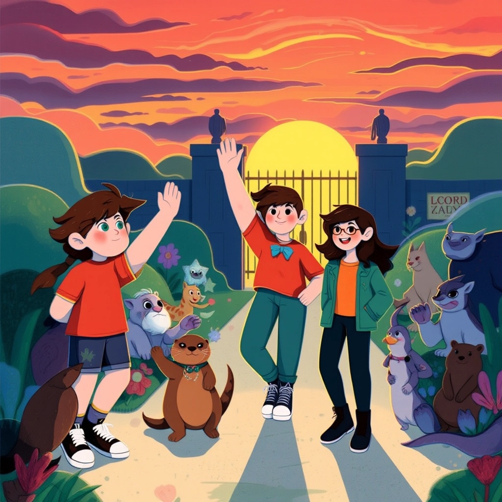'Thank you for helping our creatures today,' [Oliver](DTMWJ2CJ) said as the sun began to set. 'Remember, kindness isn’t just for magical animals; it’s for our world, too.' The zoo gates shimmered behind them as [Ben](TW5Z2WK4) and [Emory](BQTW9327) waved goodbye.