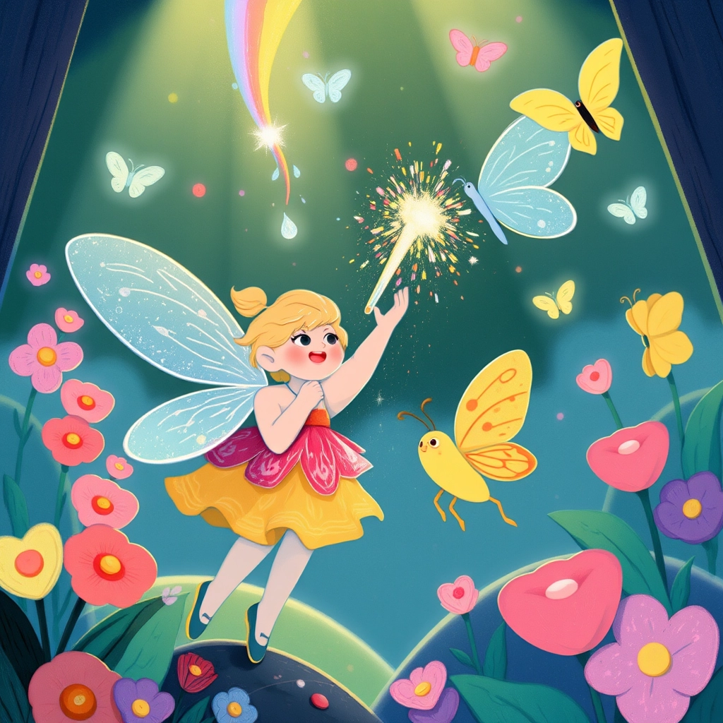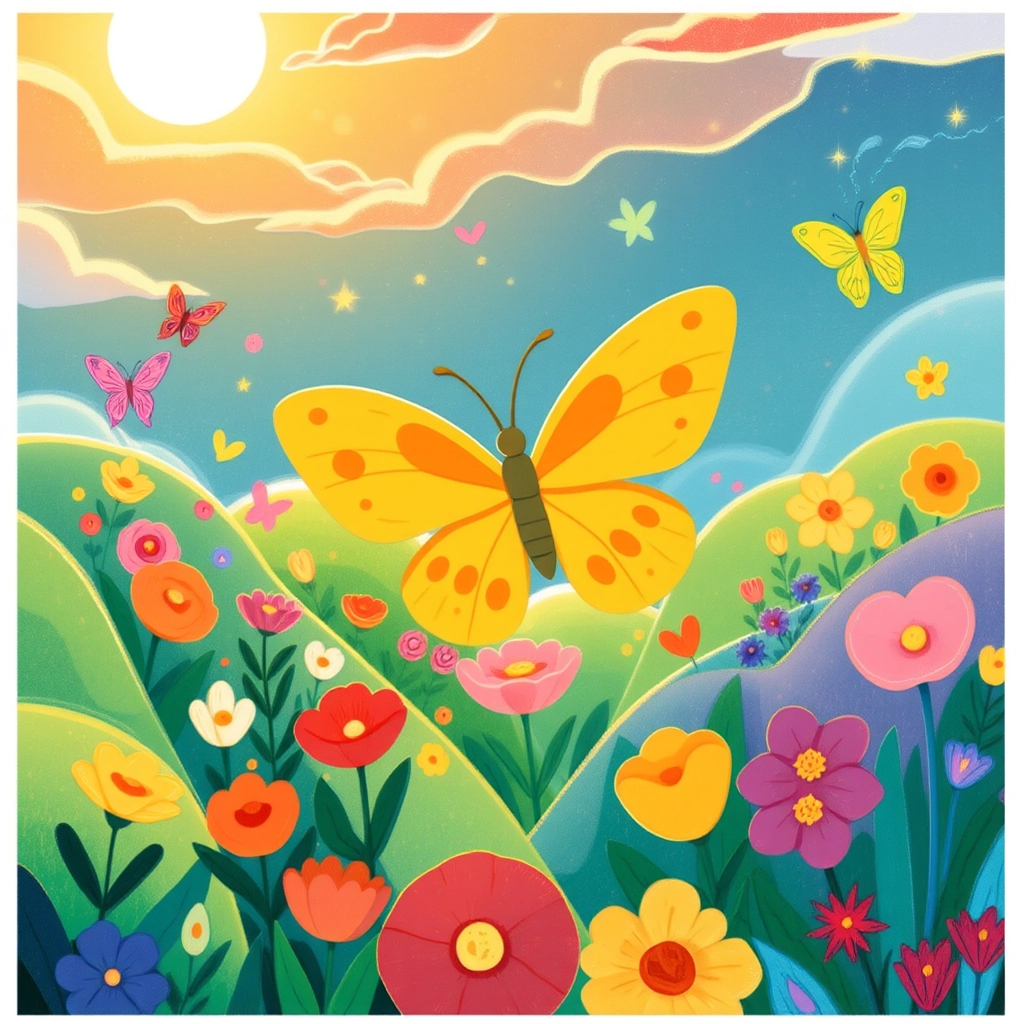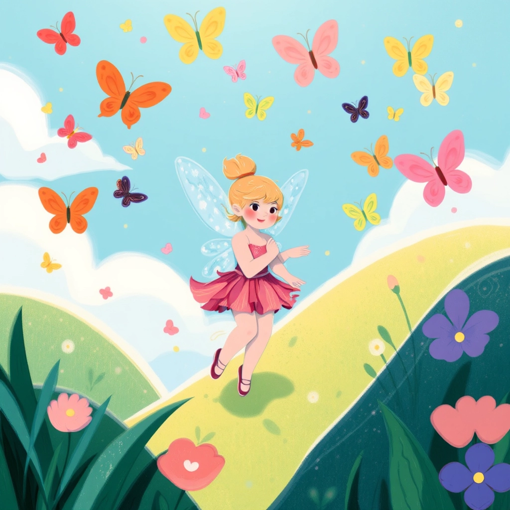 [Flutter](GTVZWQB7), the tiniest fairy, loved to play in her meadow of butterflies and giggle as they danced in the air.