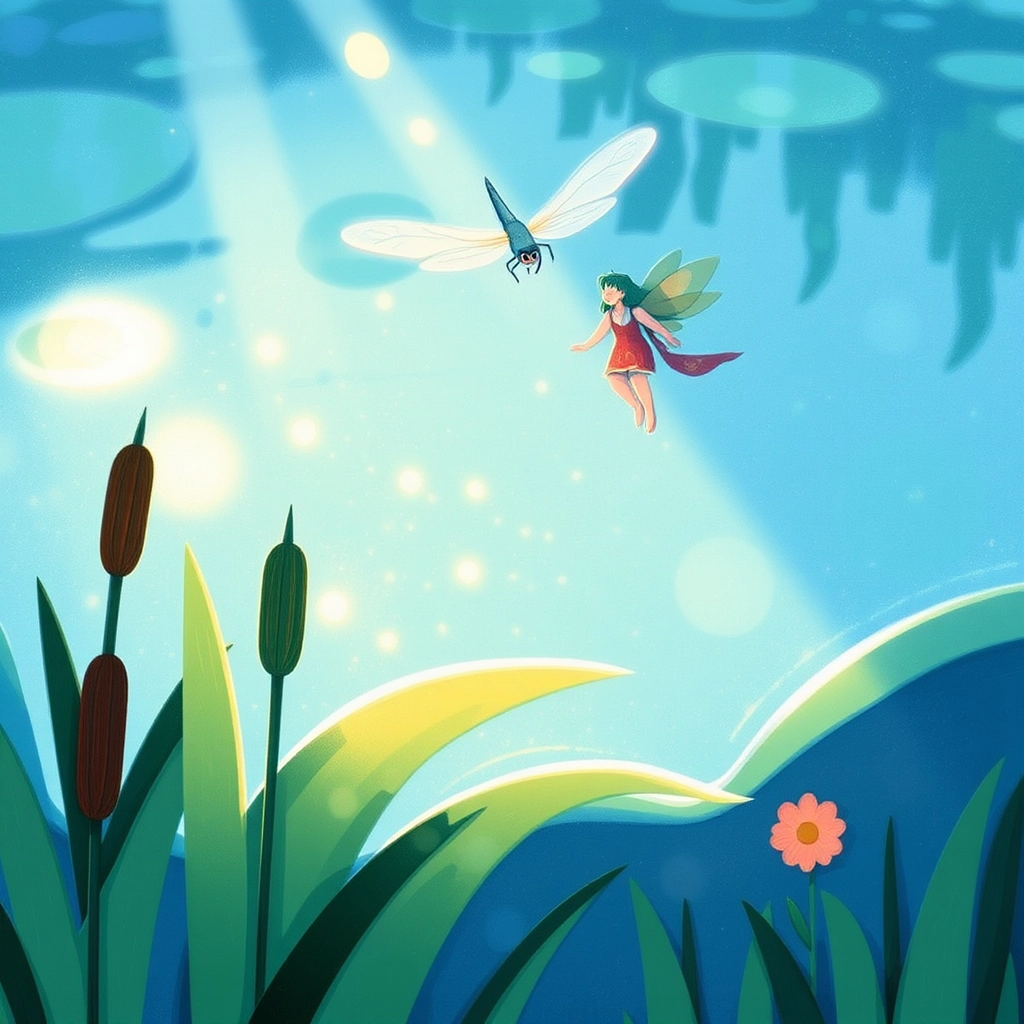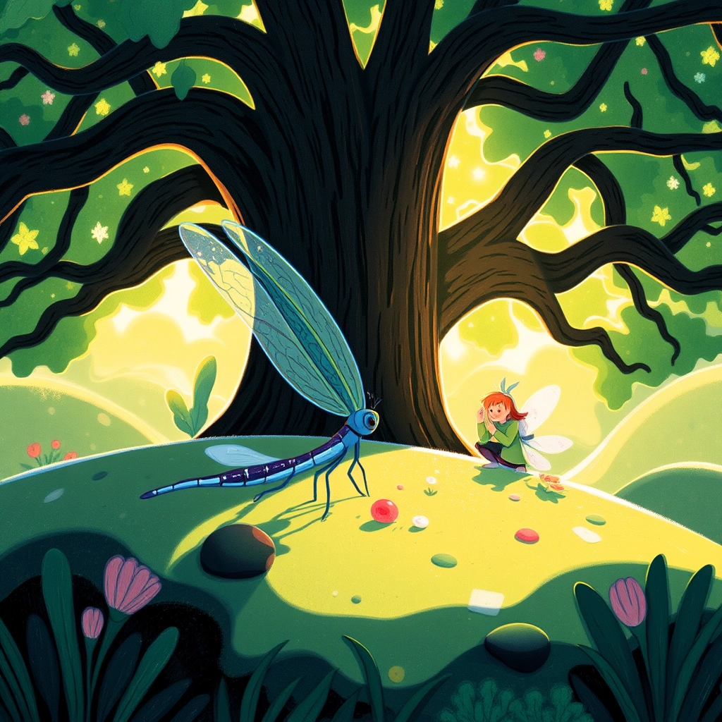 As the fairies searched for ideas, they found their dragonfly friend, [Darty](WDBZSLWG), who sparkled in shades of blue and green as he zipped happily above flowers.