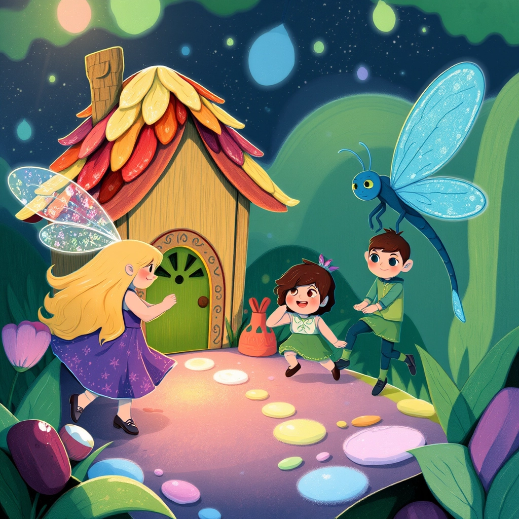 Together, [Lila](XQG7N272), [Pip](WGK23Q4R), and [Darty](WDBZSLWG) built the cutest fairy house, complete with a roof of petals, walls of reeds, and sparkling stone pathways.