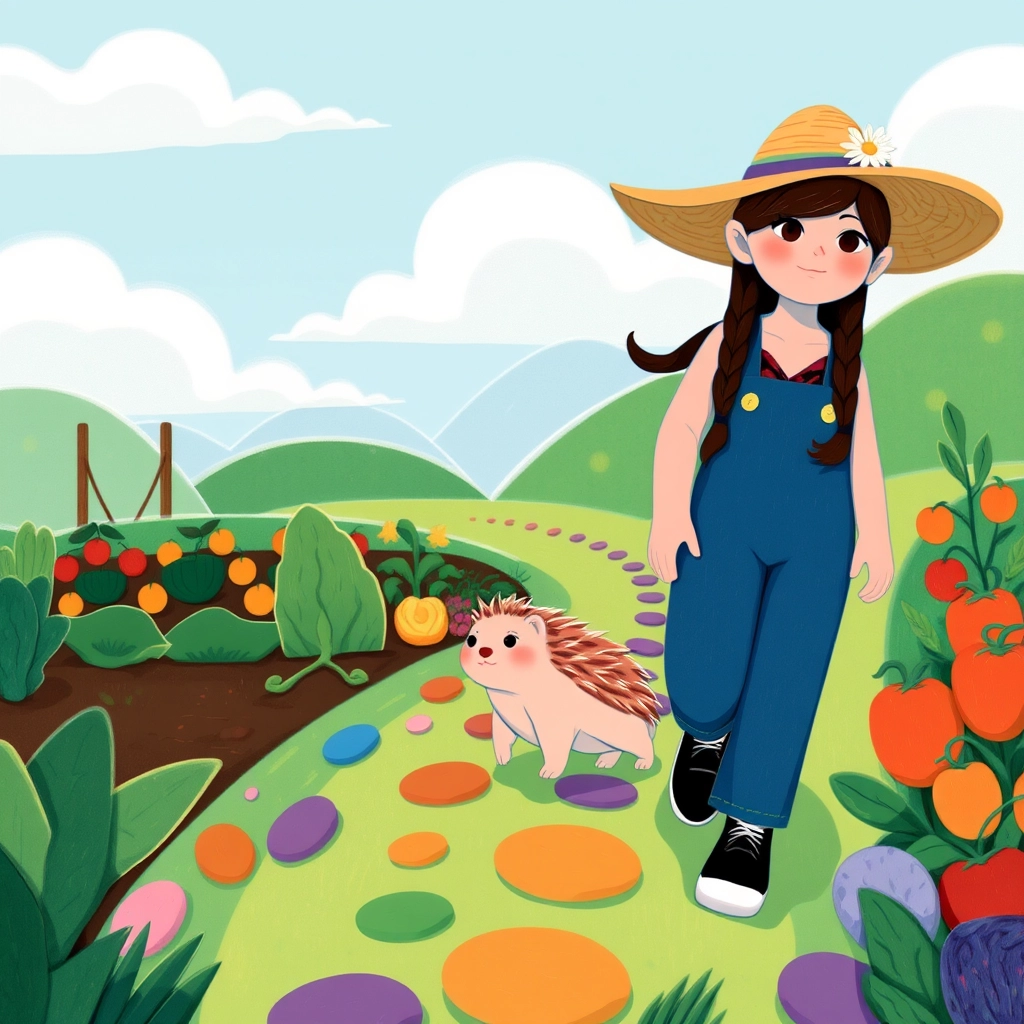 The hedgehog, whom [Lily](KFDC675Y) named [Prickles](RWH2P9HL), loved exploring the garden. He had so much fun discovering hidden corners, like the vegetable patch where the carrots grew.
