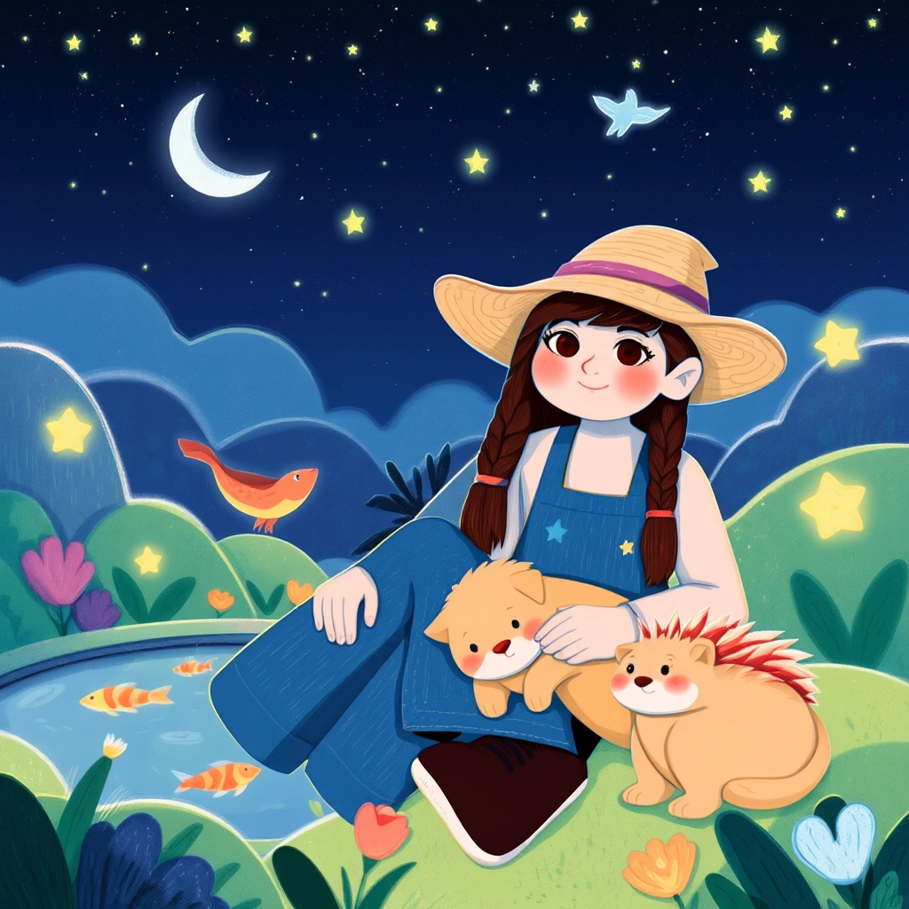 That night, under the twinkling stars, [Lily](KFDC675Y) and her animal friends sat together by the fish pond. She knew her garden was the happiest place to be.