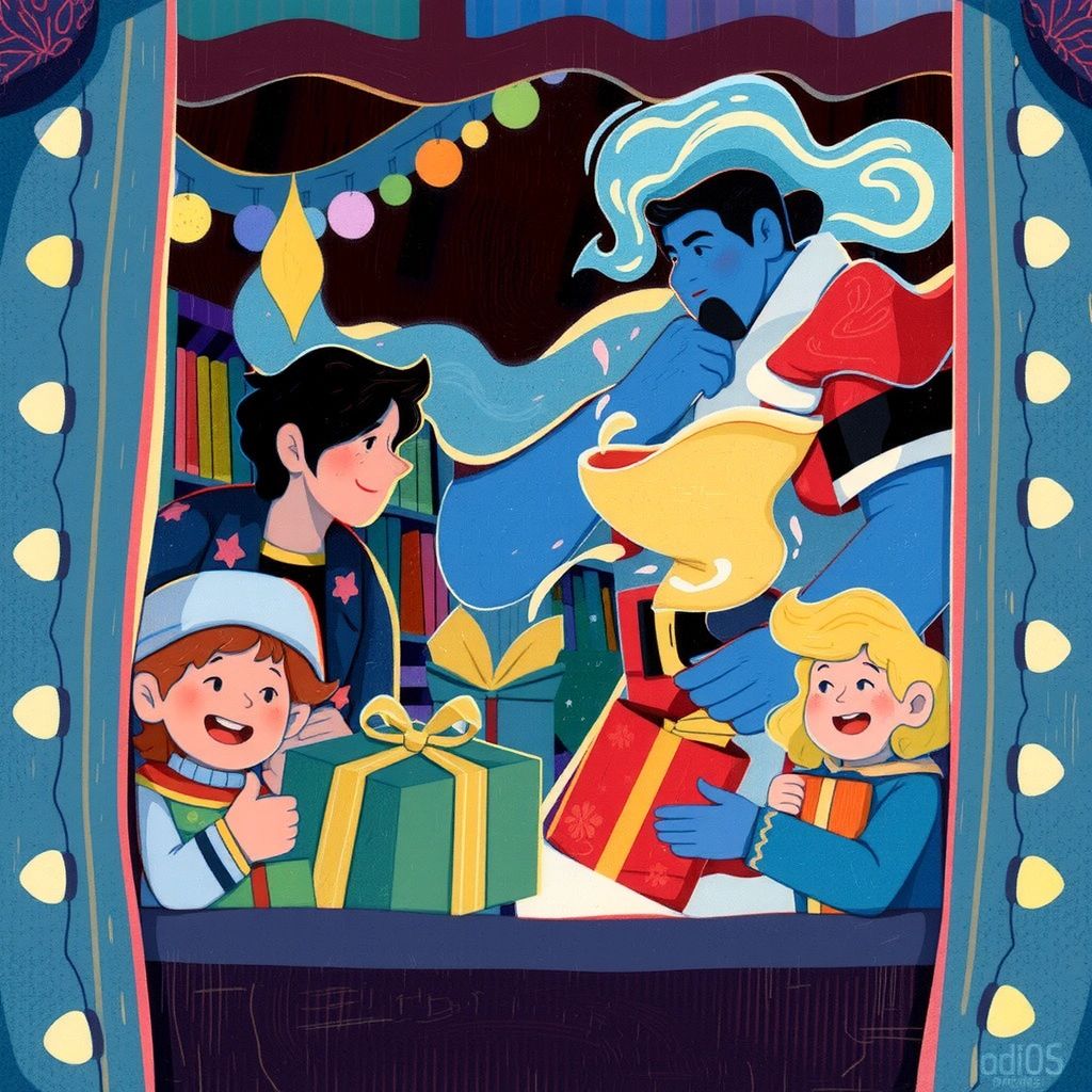 On a chilly December night, [Sam](5DBC3TZD) whispered to the genie, 'How do you like my wishes?' The genie, now in a Santa suit, chuckled warmly, 'You are wiser than you appear.'
