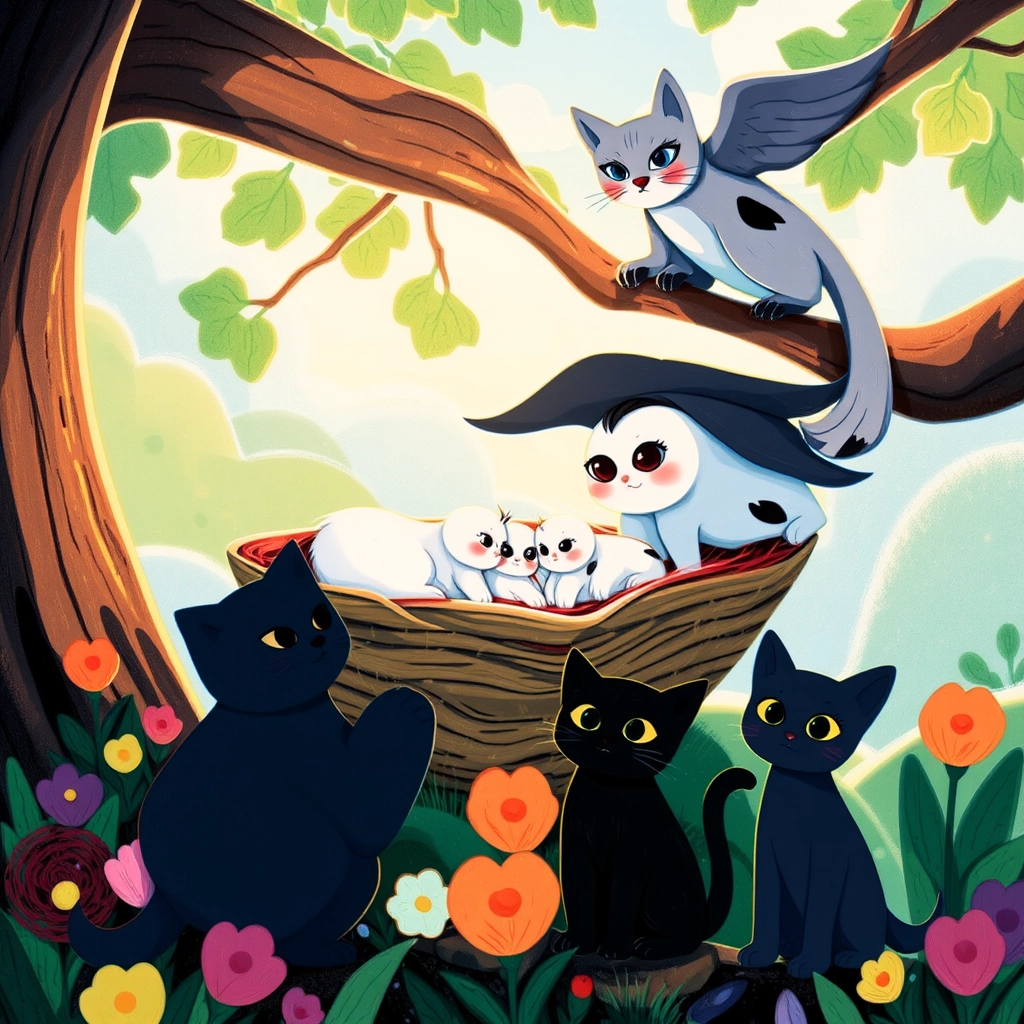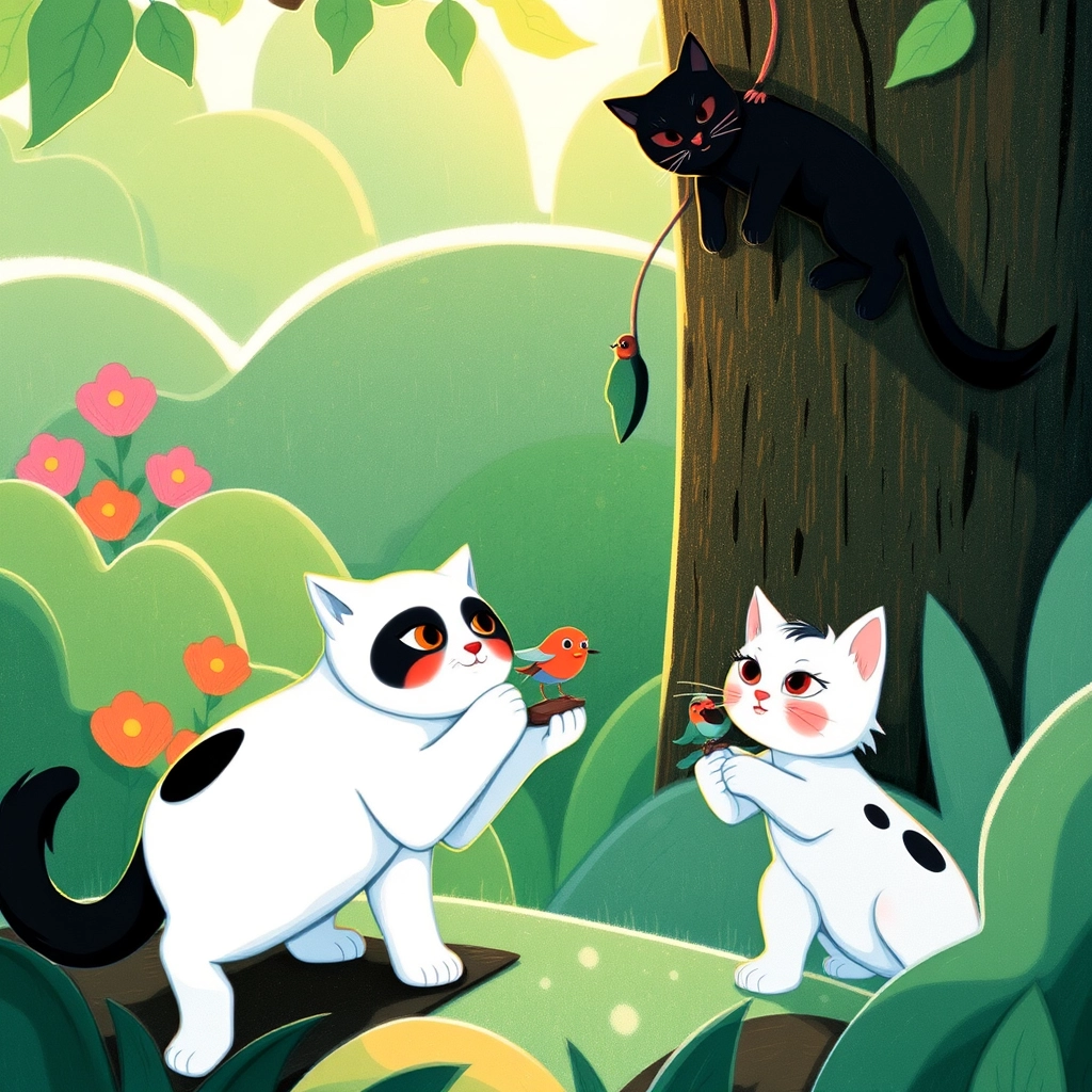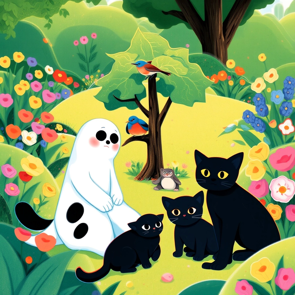 From that day on, the kittens became known as heroes of the garden. Whenever a bird or small creature needed help, they were always ready with gentle paws and kind hearts. [Grammy](G2RY3GGV) and [Gramps](4P6ZNGVX) couldn’t have been prouder of [Ghost](WZMXRTV4), [Sootie](TVFBCHVY), and [Lynx](5GNY3X5M), their brave little adventurers who truly cared about all creatures, big and small.