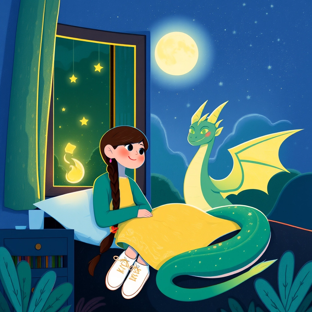 As the day ended, the dragon flew [Emily](N7GHL663) back home. 'Thank you for the adventure!' [Emily](N7GHL663) said with a big smile. 'Anytime!' the dragon replied warmly.