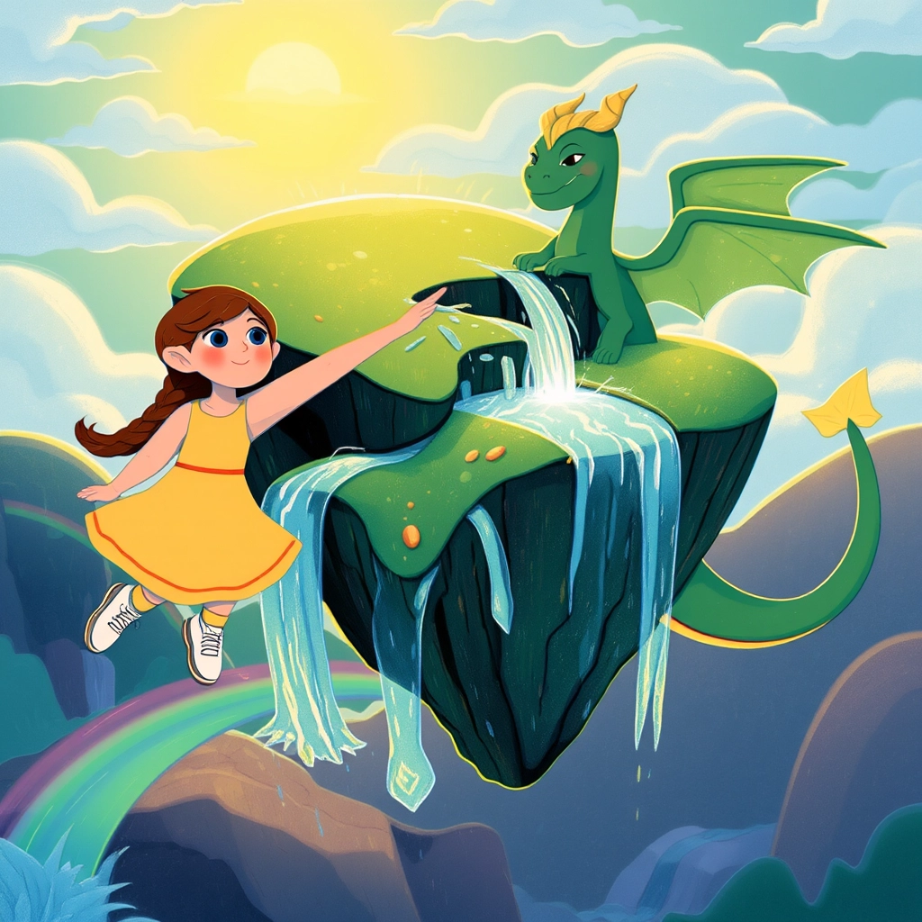 High above the clouds, they spotted a magical floating island with shimmering waterfalls that sparkled like rainbows.