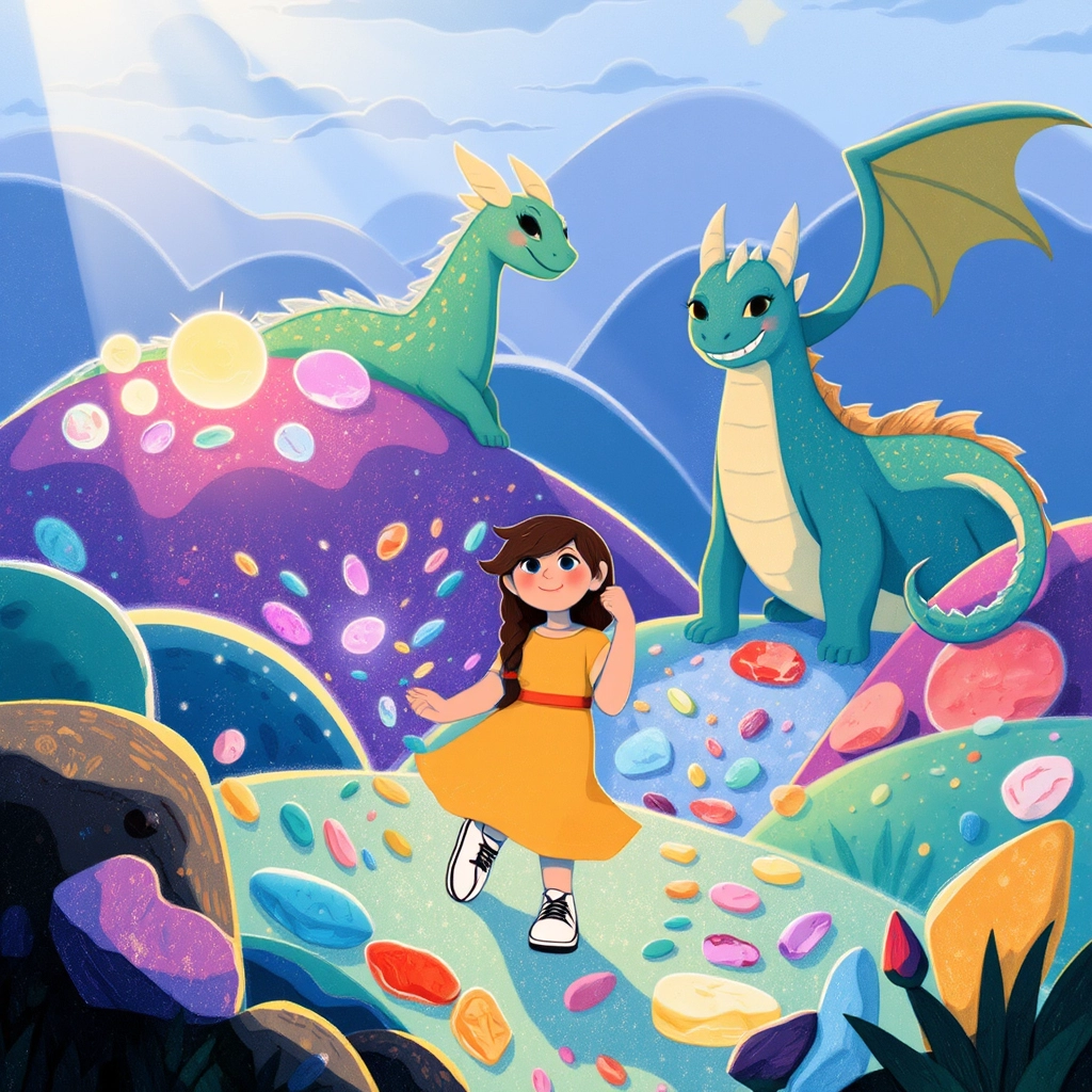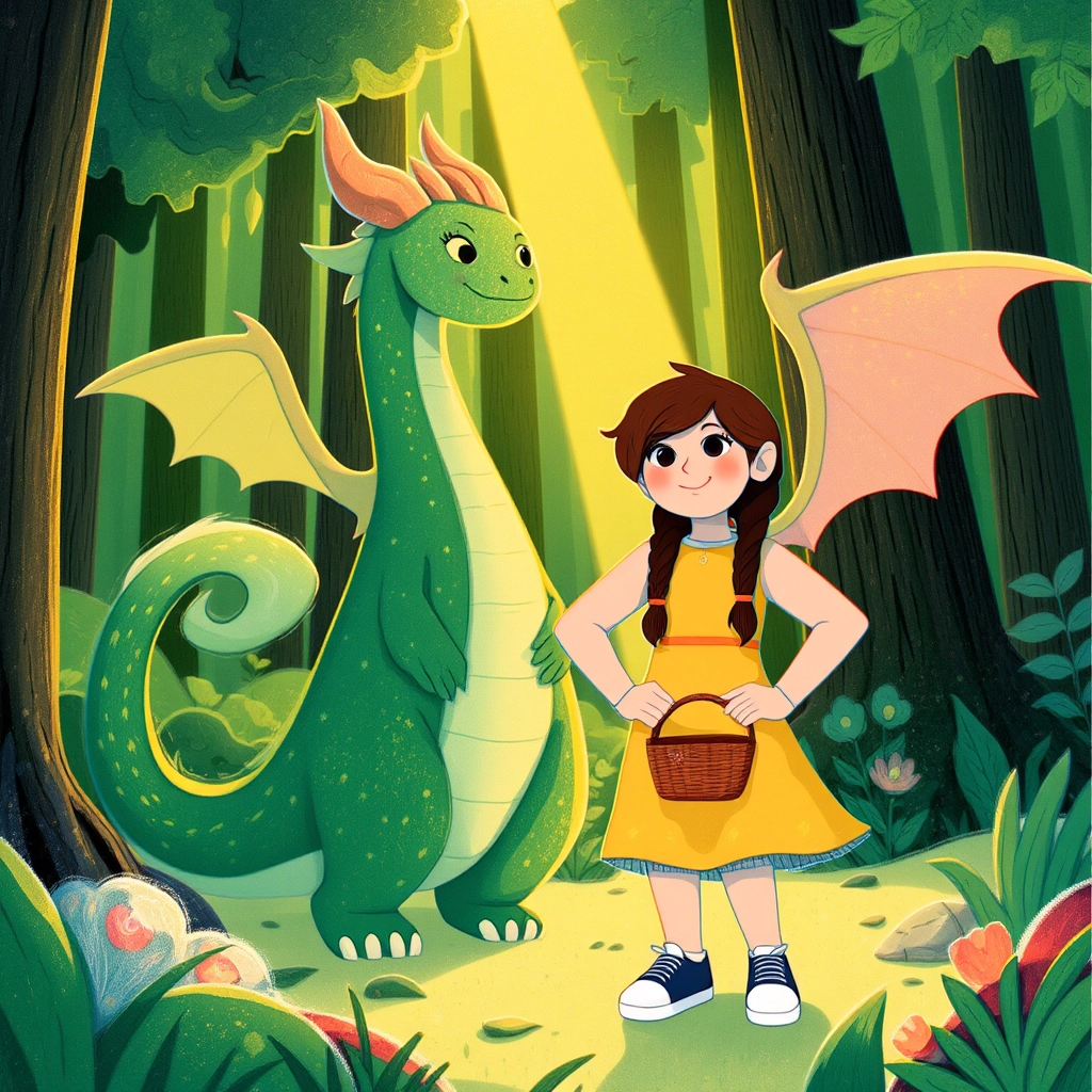 'Hello,' said [Emily](N7GHL663) bravely, 'Are you lost?' 'Not exactly,' the dragon rumbled in a deep but friendly voice. 'I was just looking for someone to go on an adventure with me!'