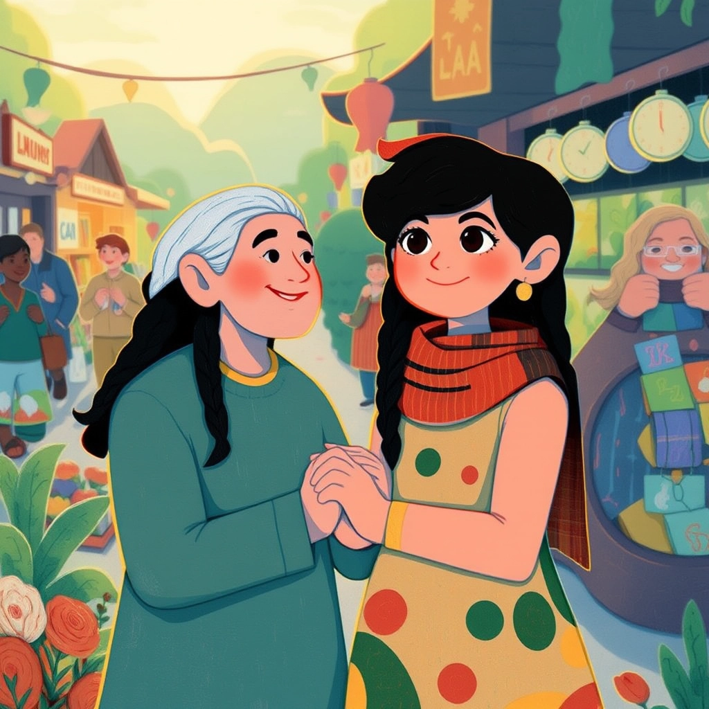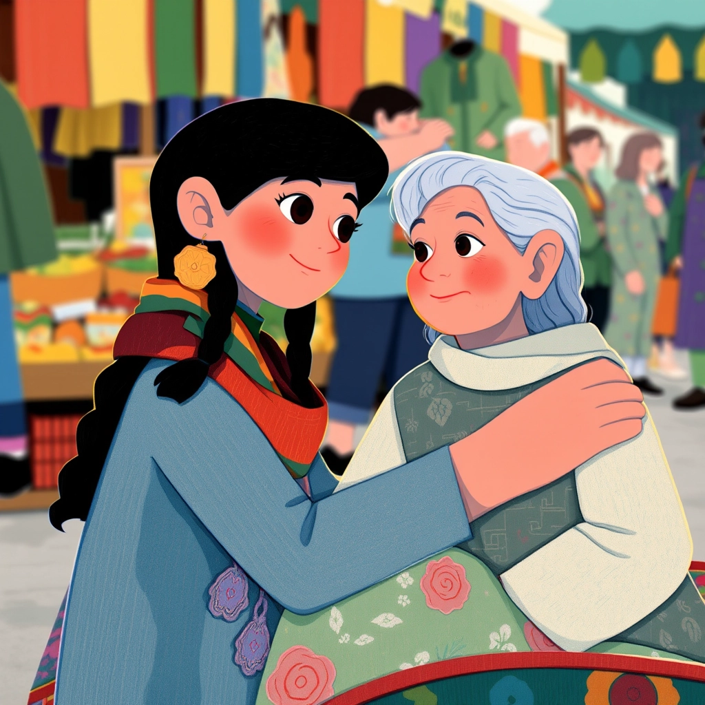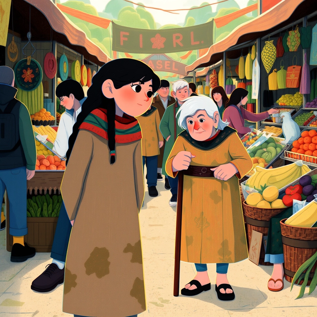 One day, as [Lina](HZSHS75L) was helping her parents at the market, she noticed an old woman struggling to walk. The woman seemed hungry and weak.