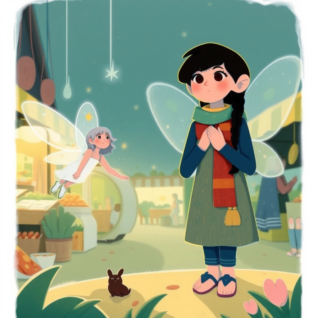 Suddenly, the old woman transformed into a beautiful fairy with sparkling wings and a glowing dress. [Lina](HZSHS75L) was amazed!